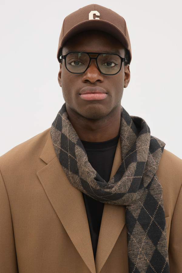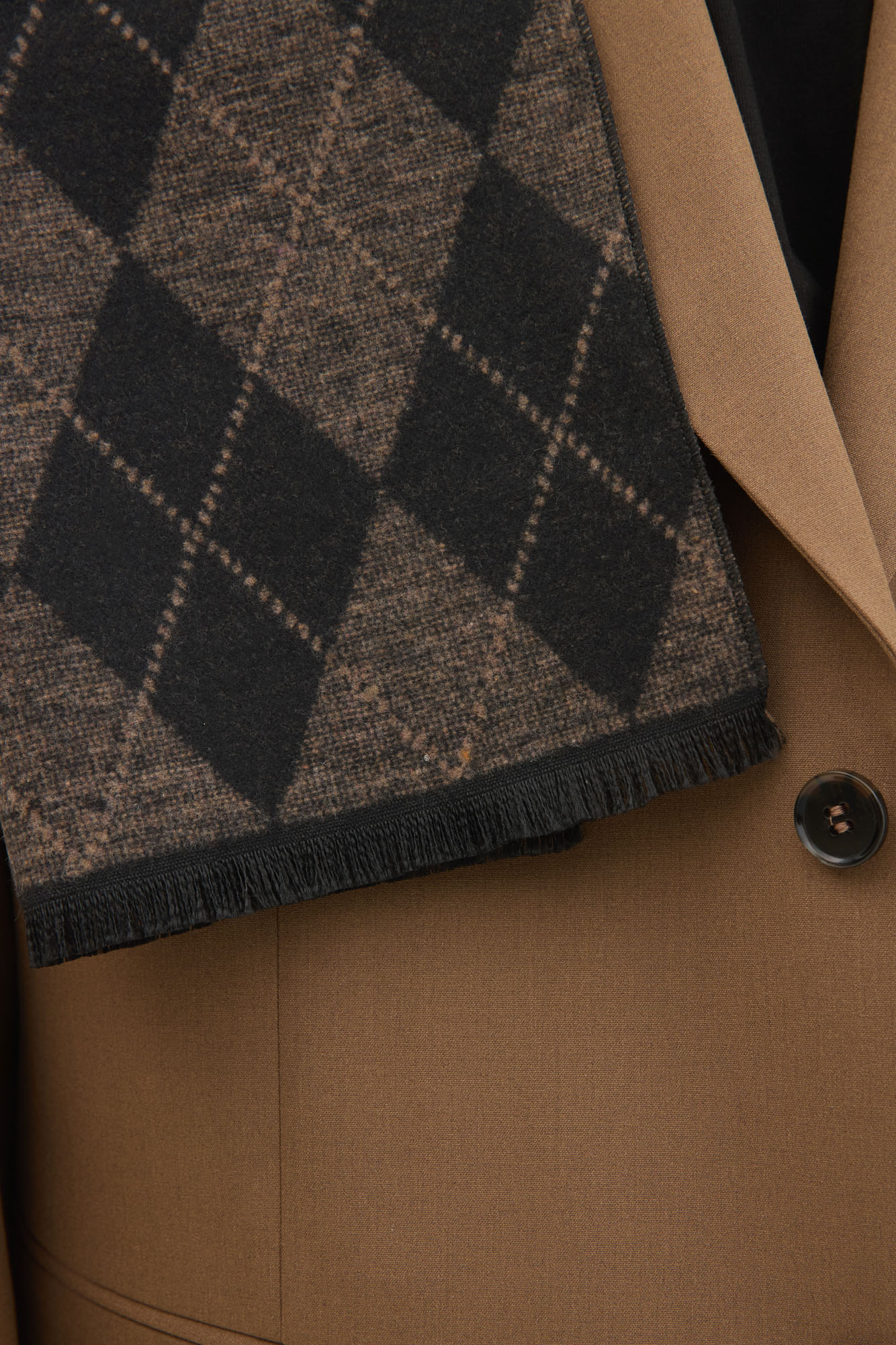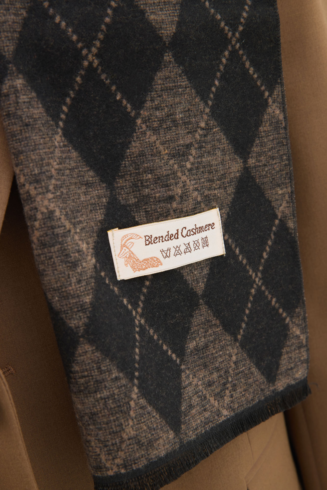 Black-Brown Blended Cashmere Double Face In Geometric Design