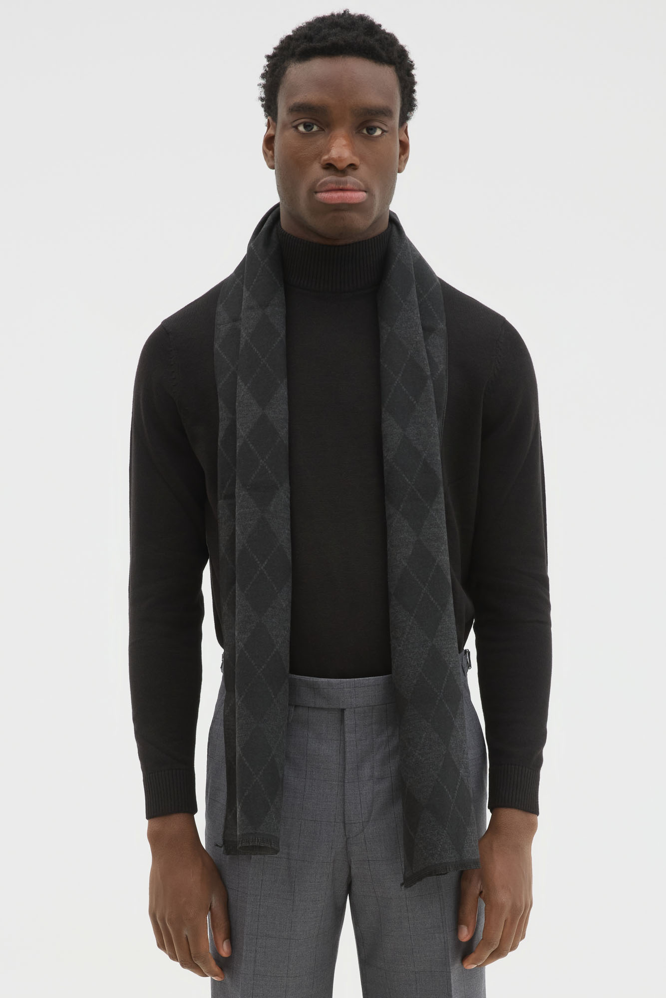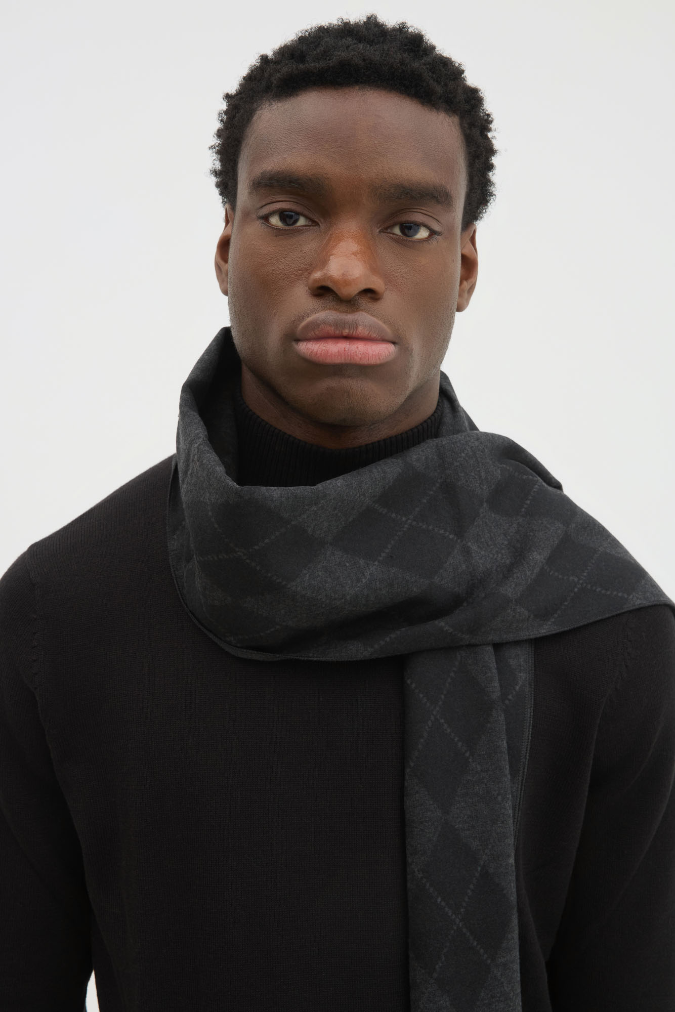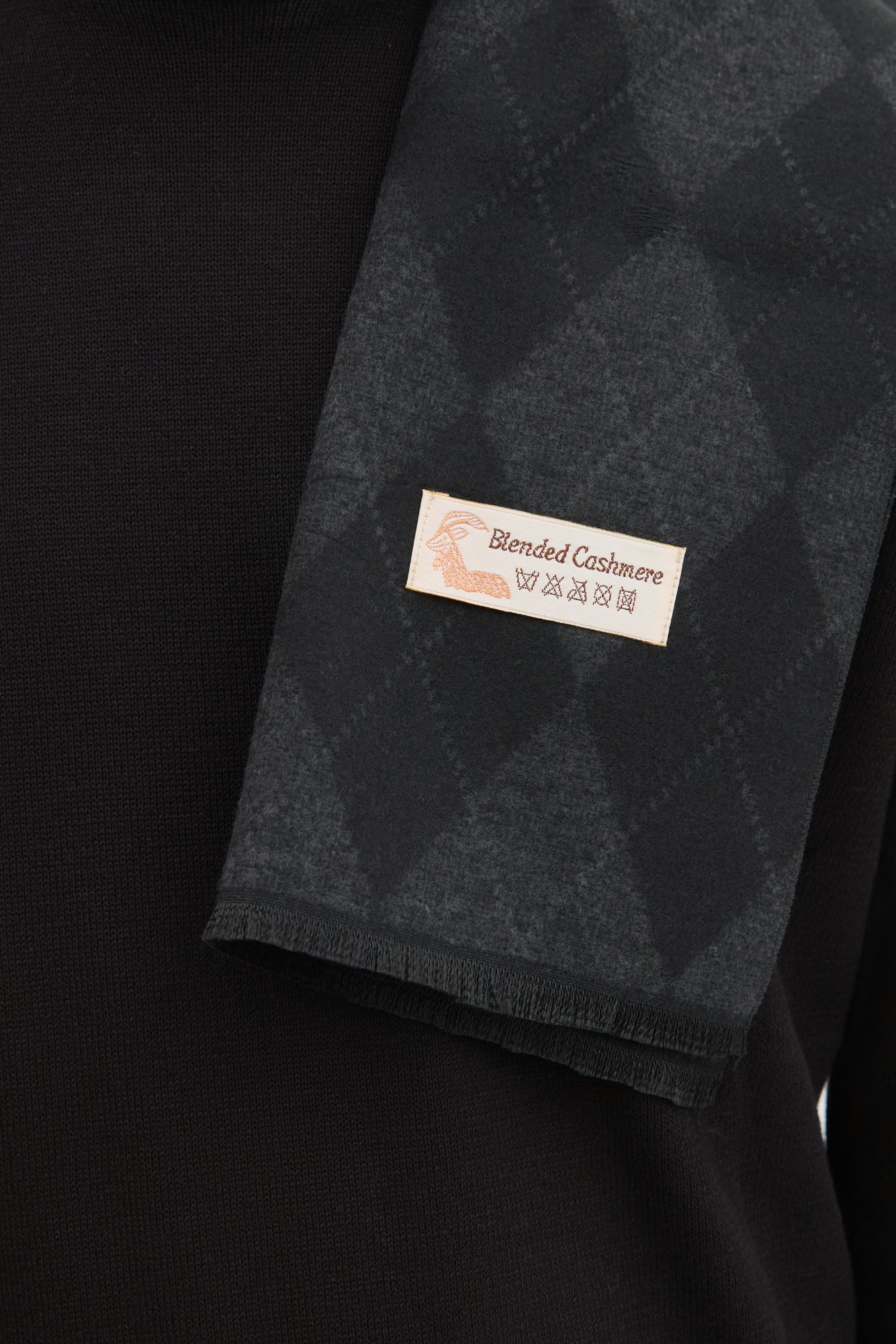 Black-Gray Blended Cashmere Double Face In Geometric Design