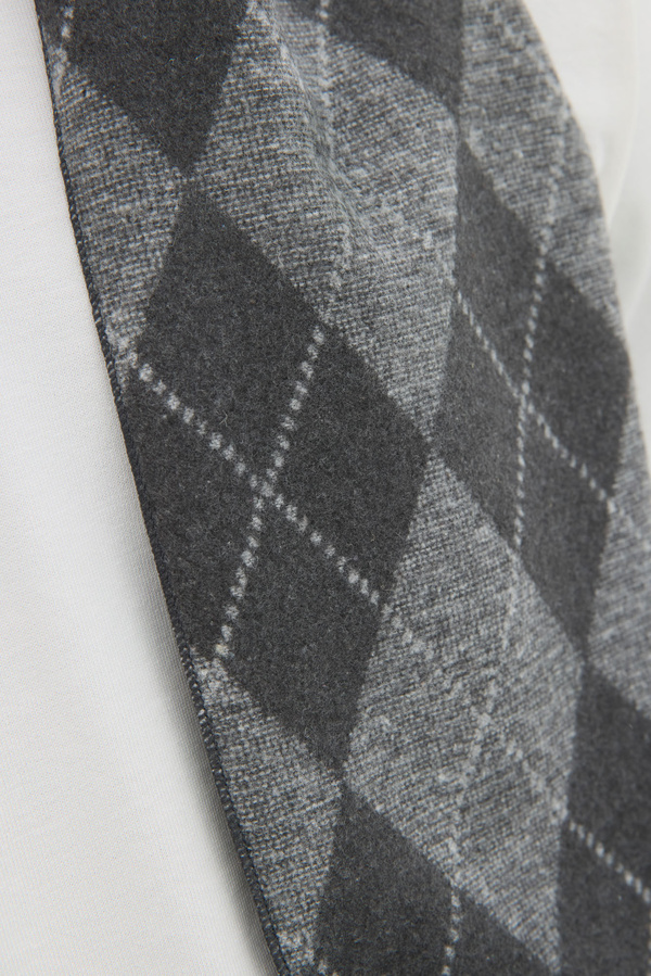 Gray-Black Blended Cashmere Double Face In Geometric Design