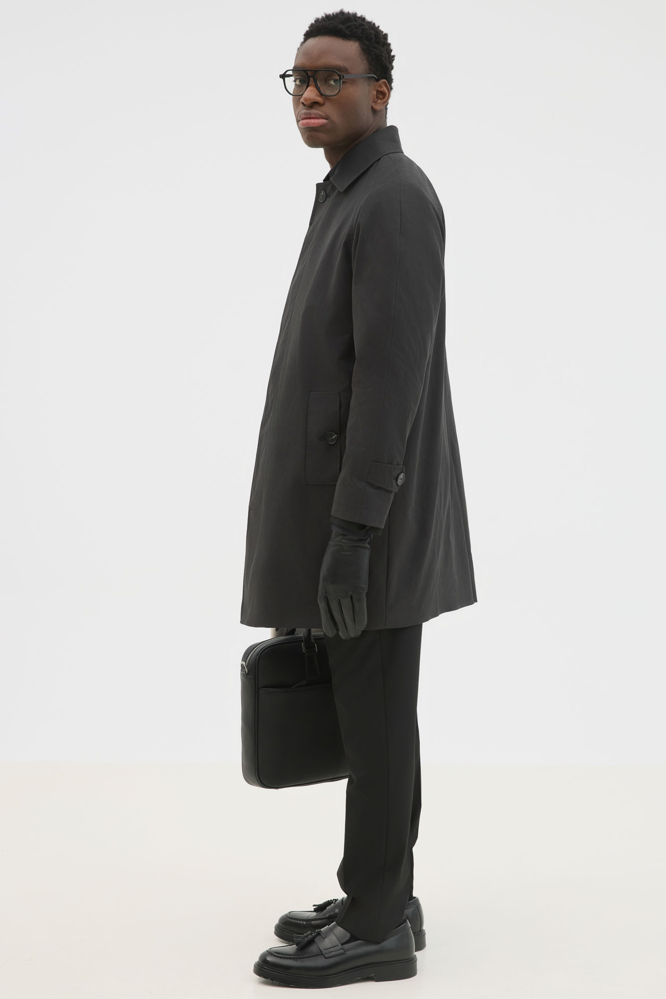 Mid Length Trench Coat In Black