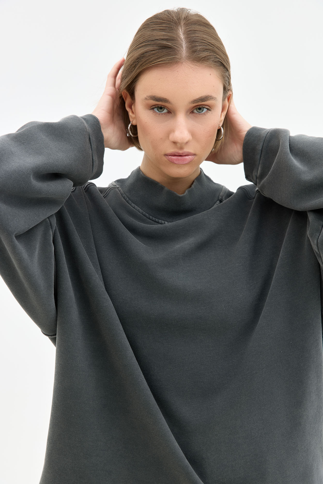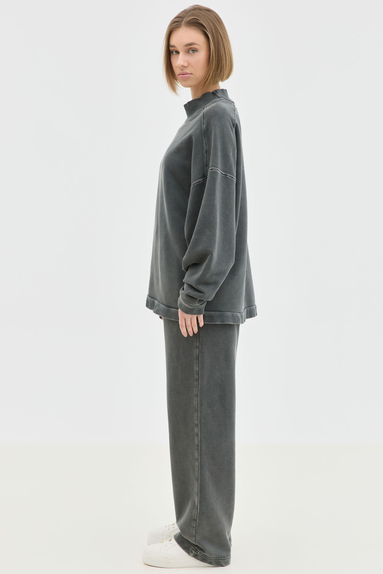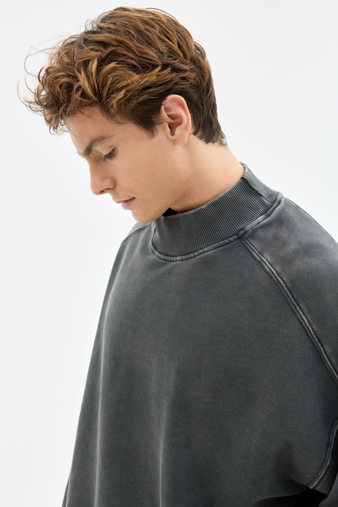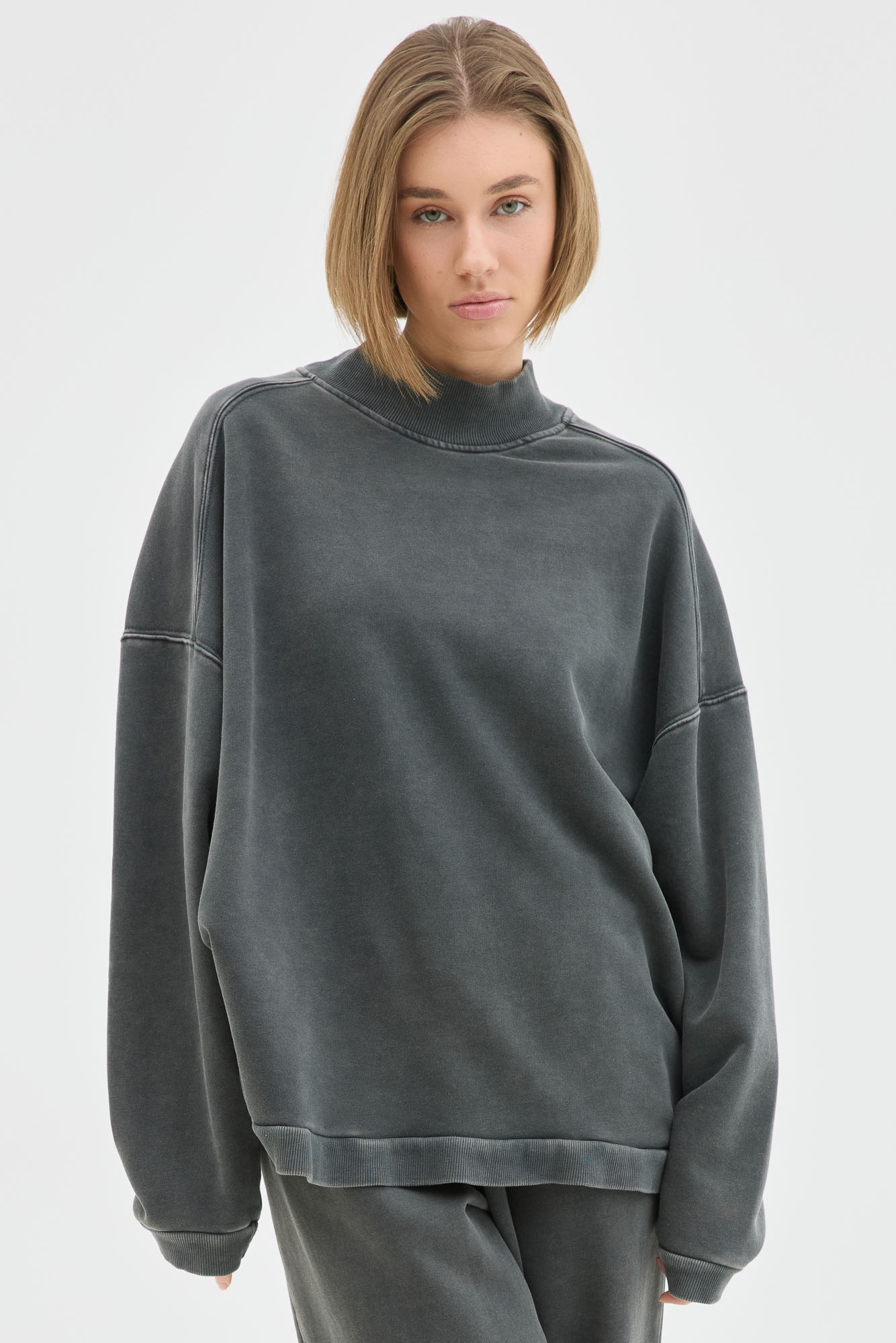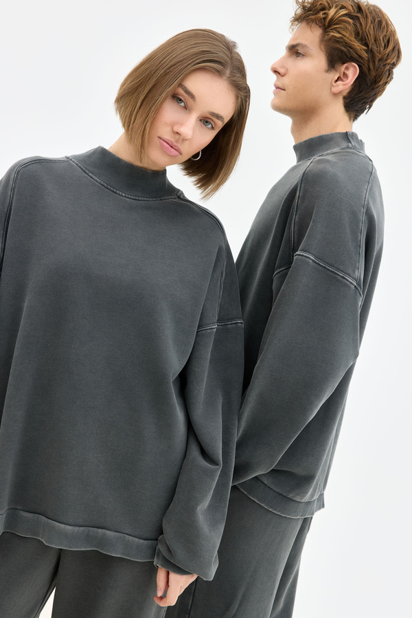 Boxy Gray With High Neck In Acid Wash