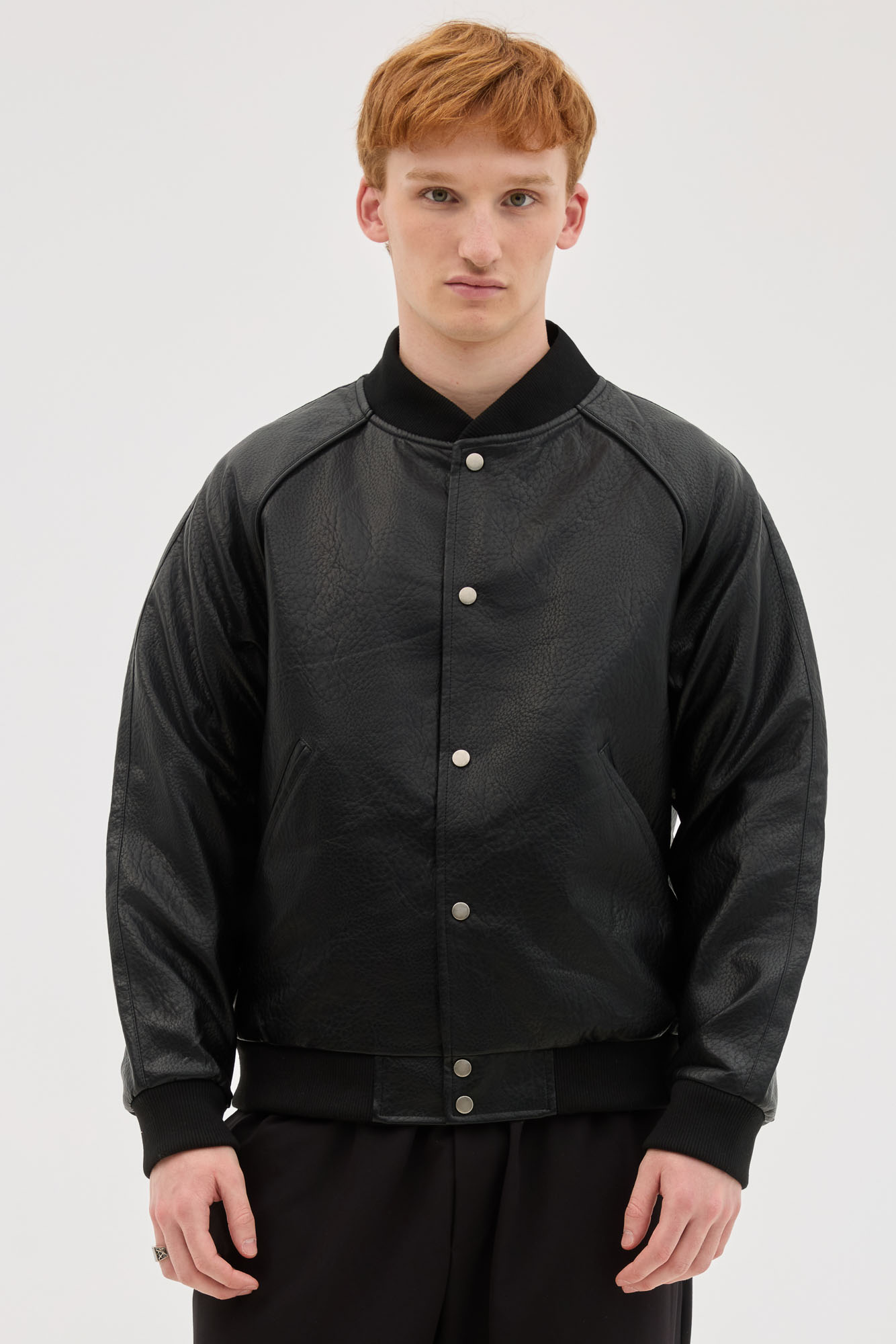 Black Buttoned Bomber In Vegan Leather