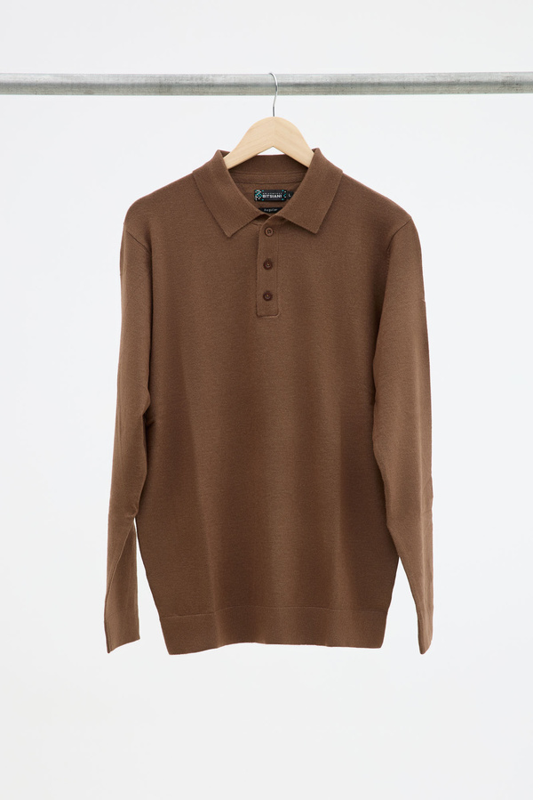 Brown Long Sleeve Polo In Regular Fit