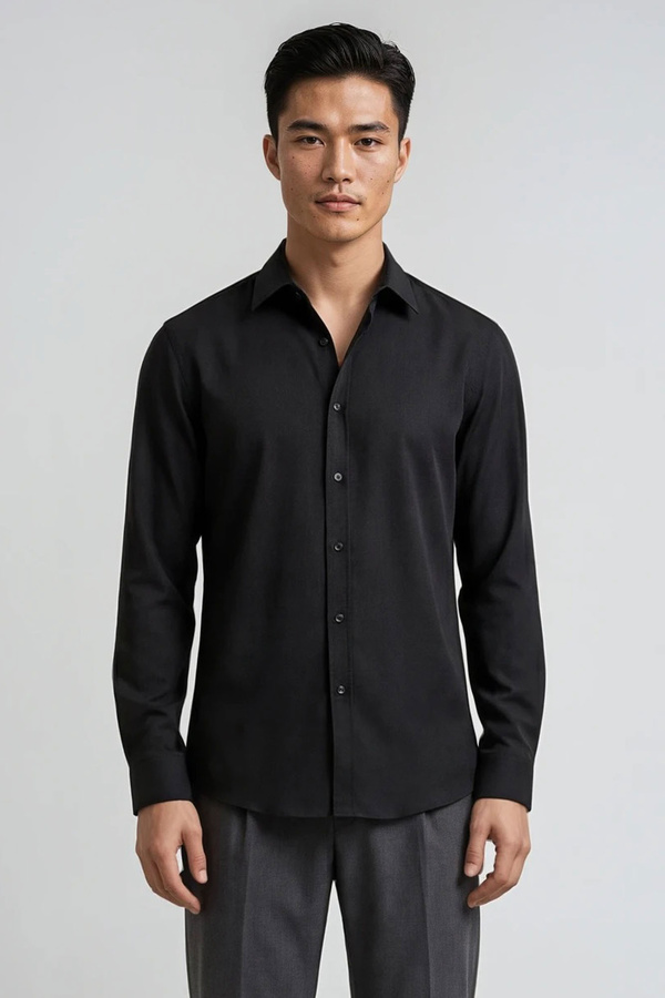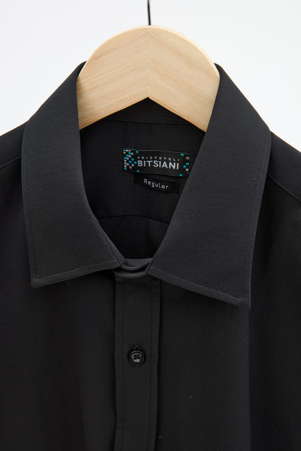 Black Satin In Pointed Collar