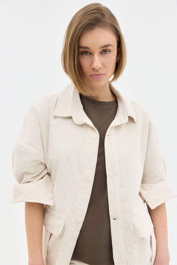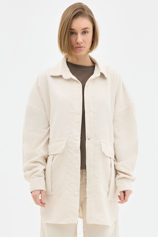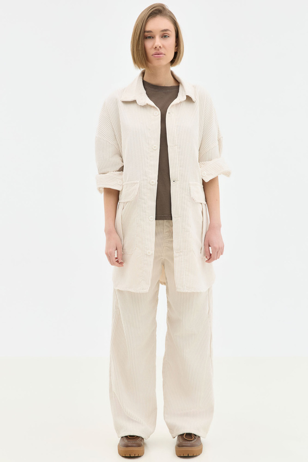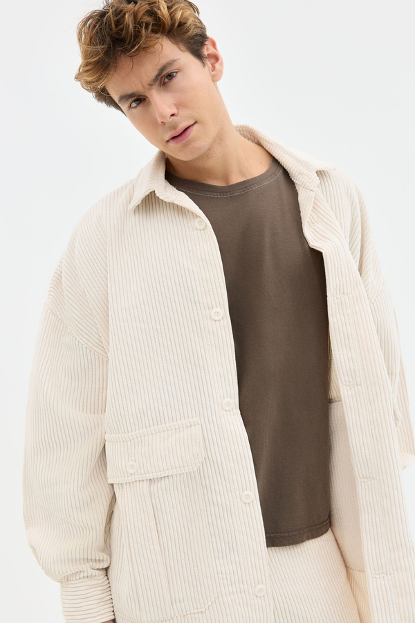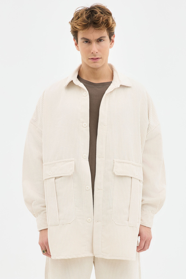 Corduroy Oversized Overshirt In Ecru