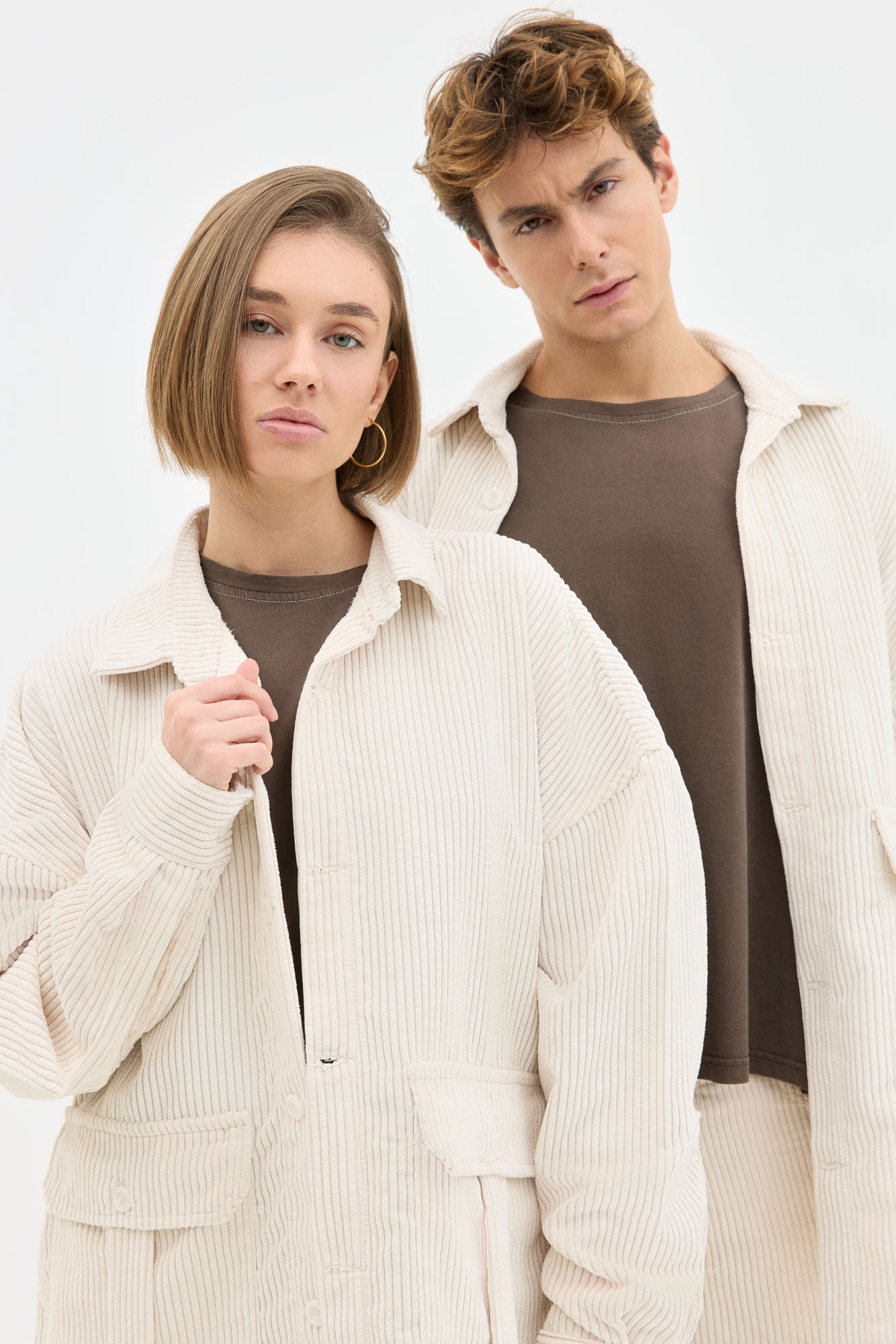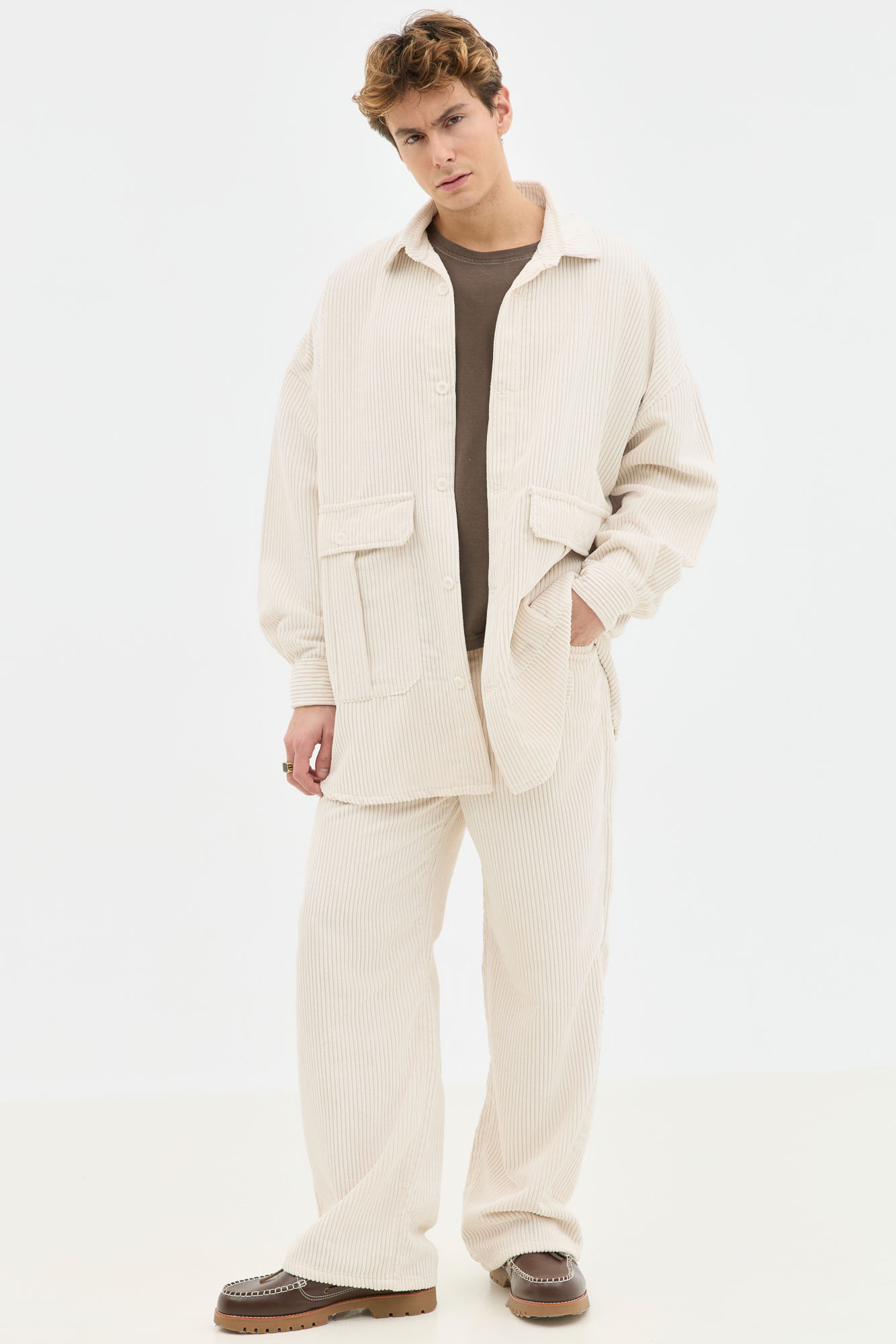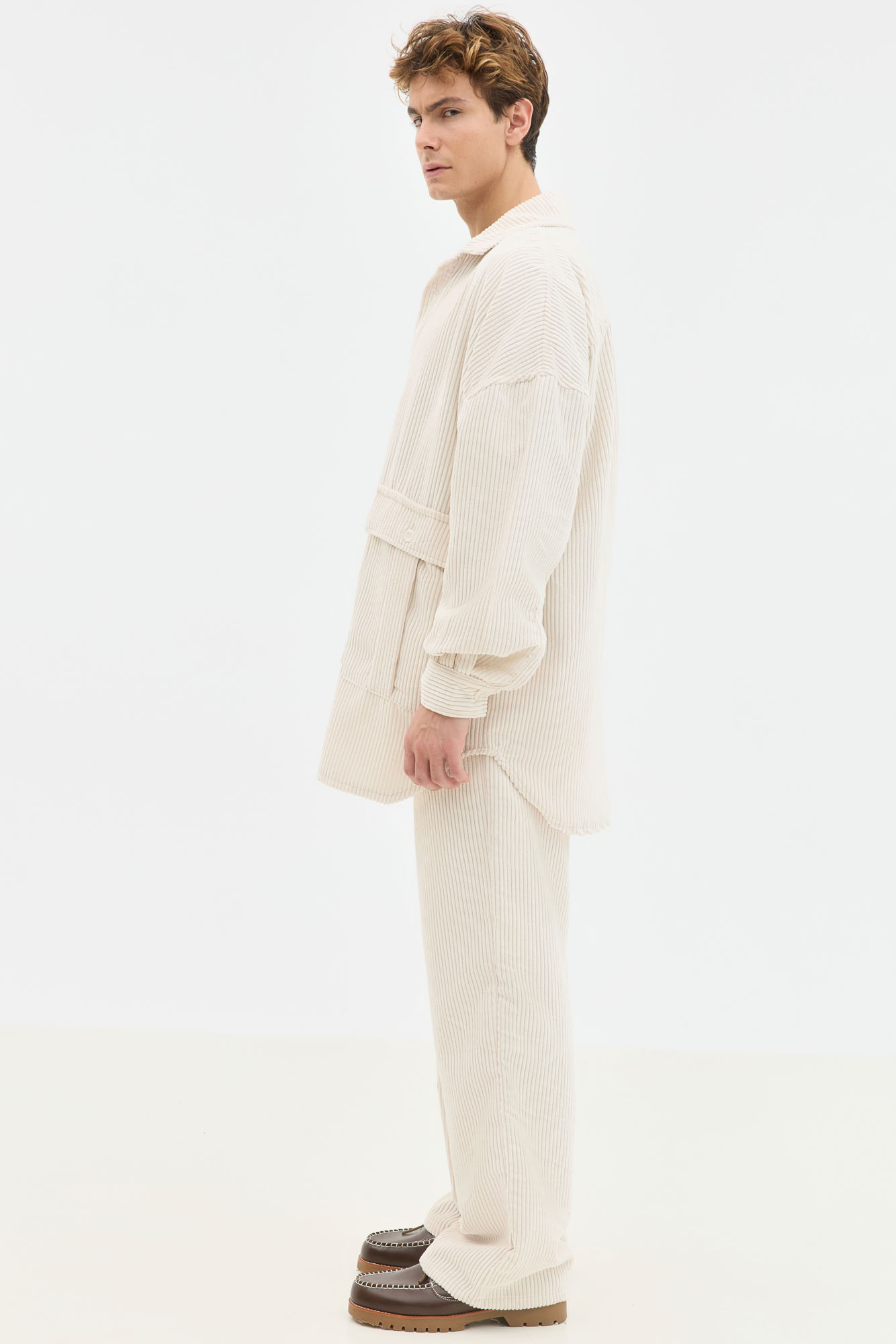 Corduroy Oversized Overshirt In Ecru