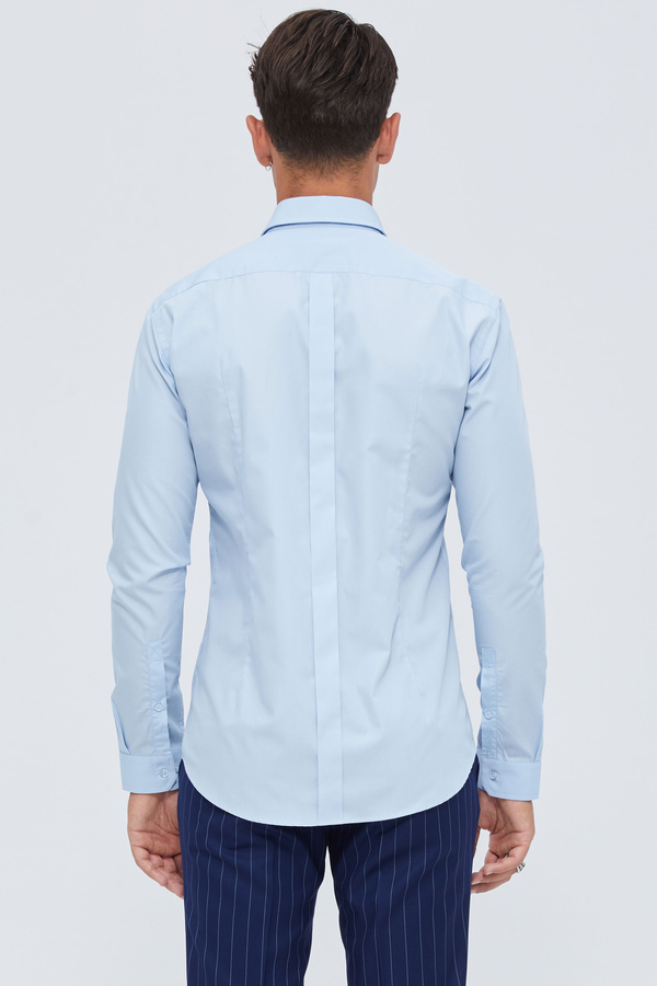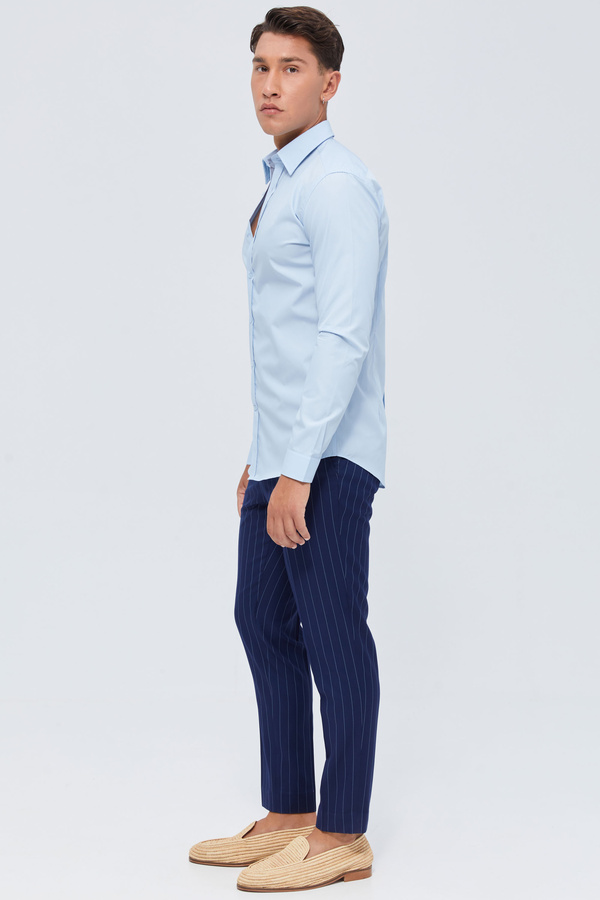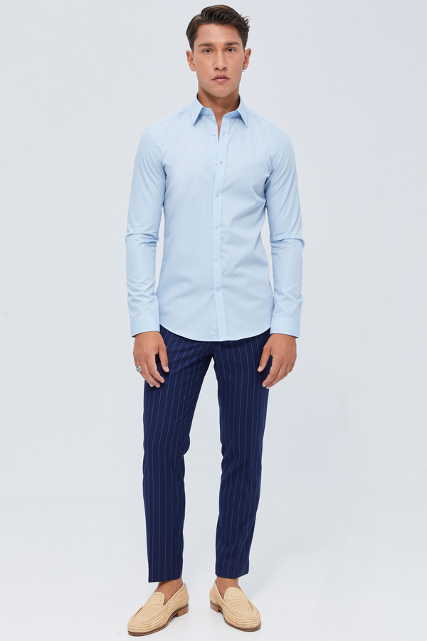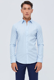Slim Fit Cyan In Mini Pointed Collar