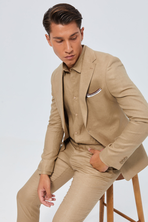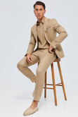 Our model wears a size 50, he is 1.88cm tall and weighs 77kg
