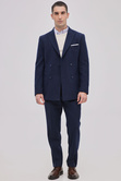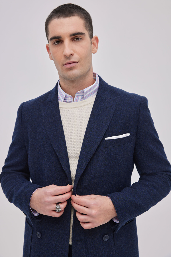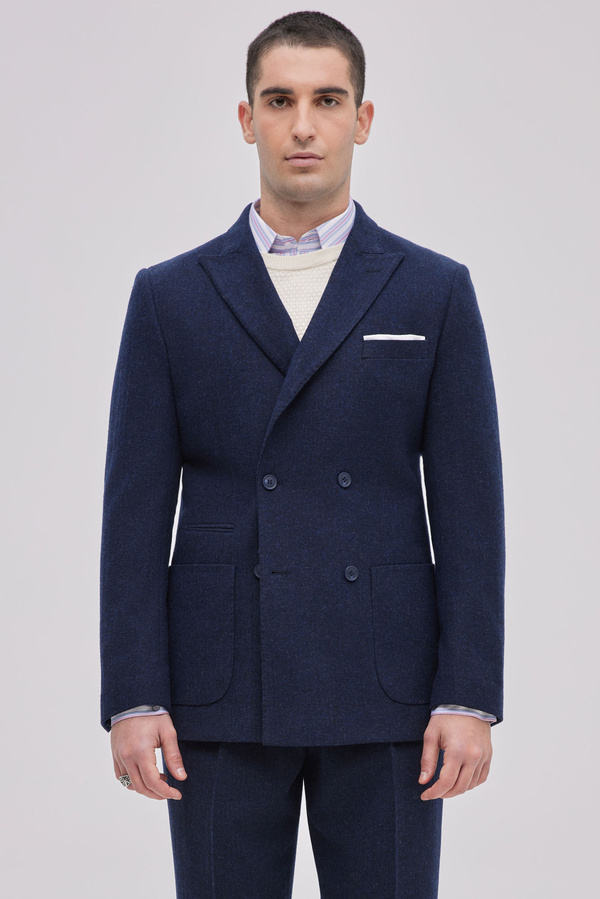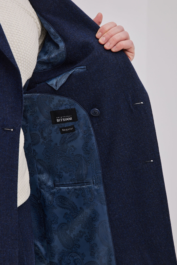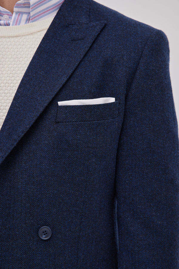 Blue Double Breasted Fishbone In Wool