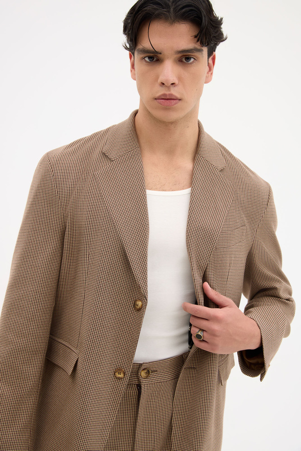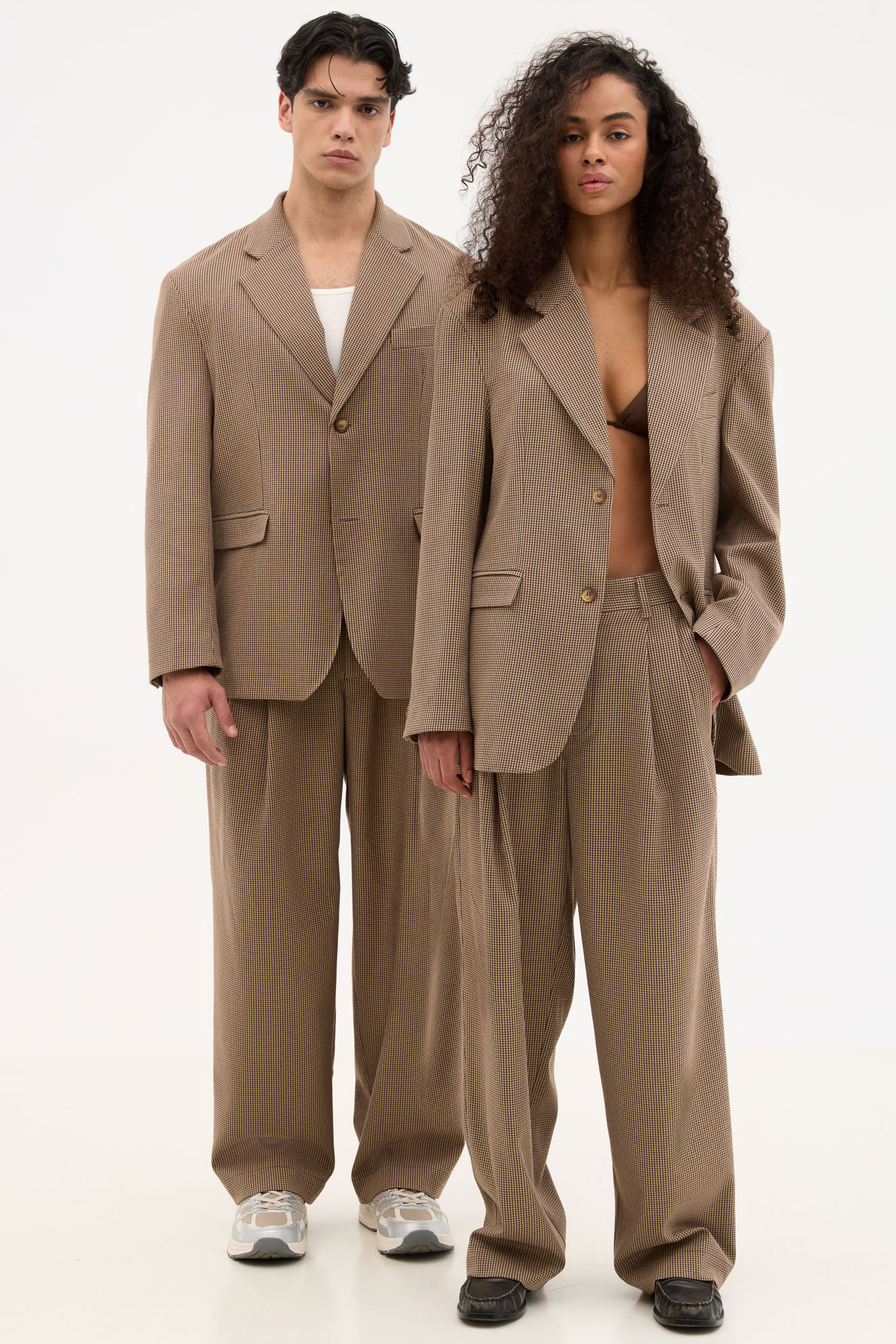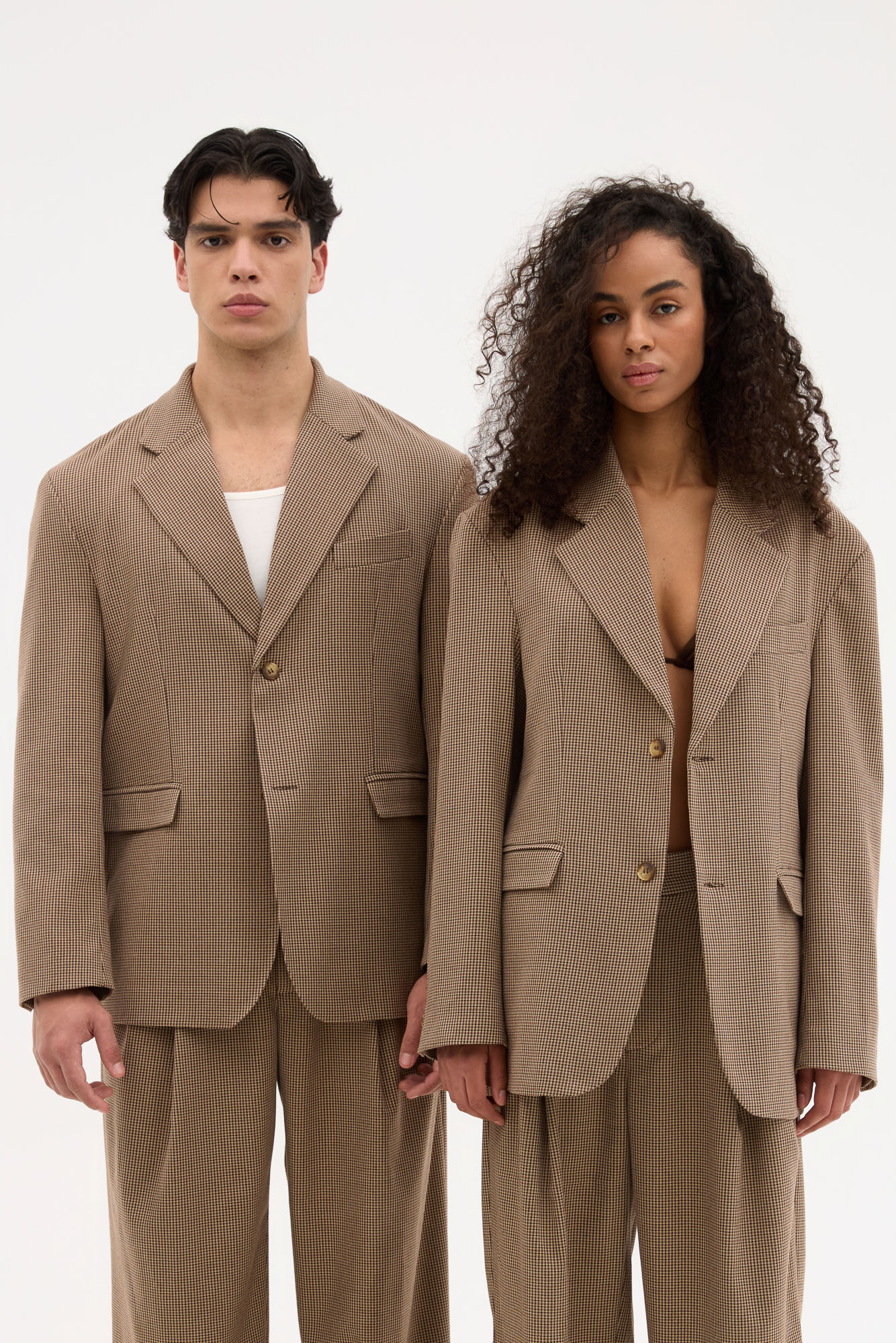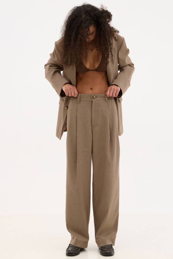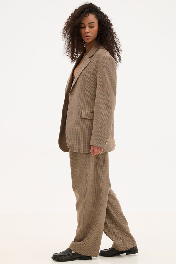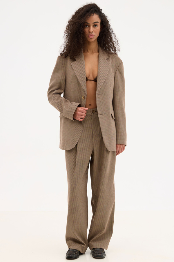 Our female model wears a size 48, she is 1.75cm tall and weighs 53kg