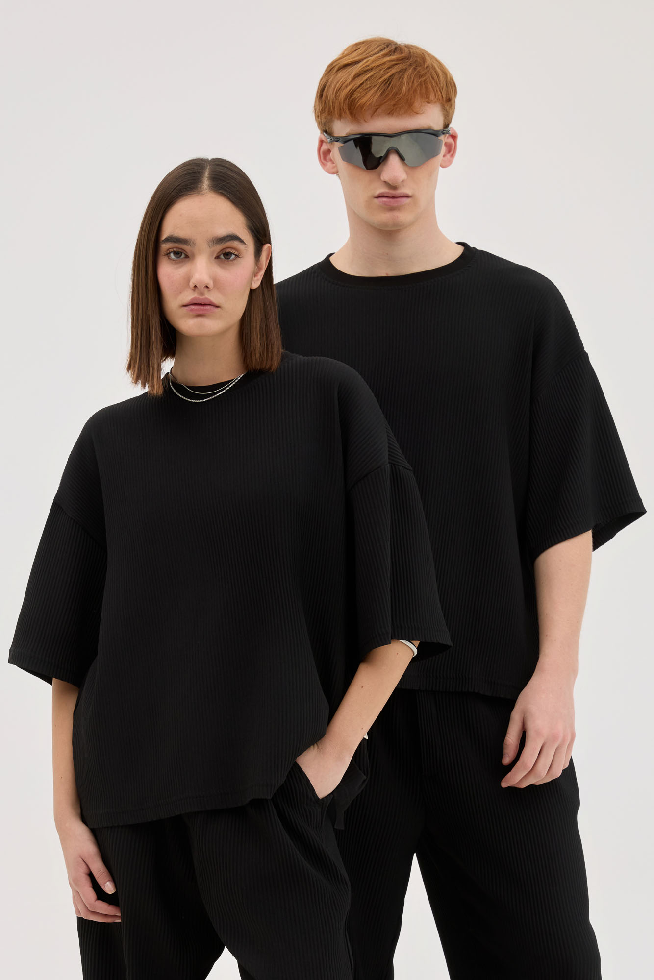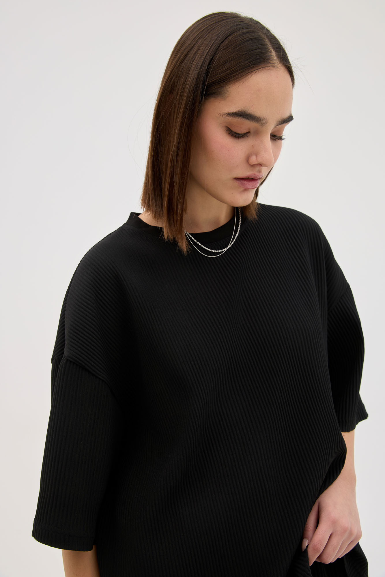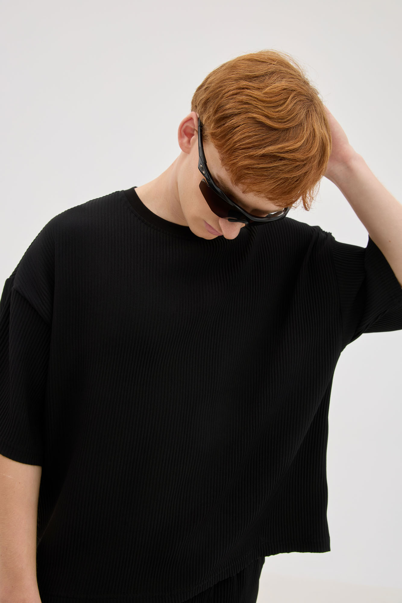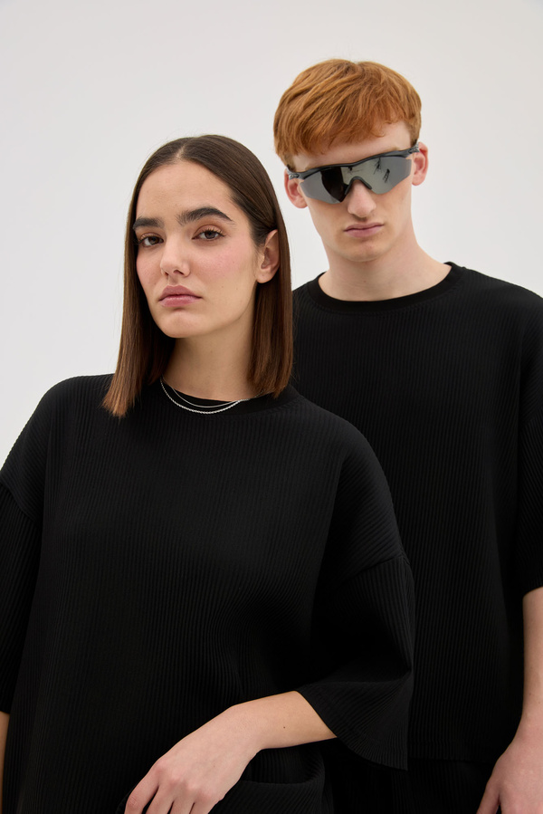 Black Plisse In Oversized Fit
