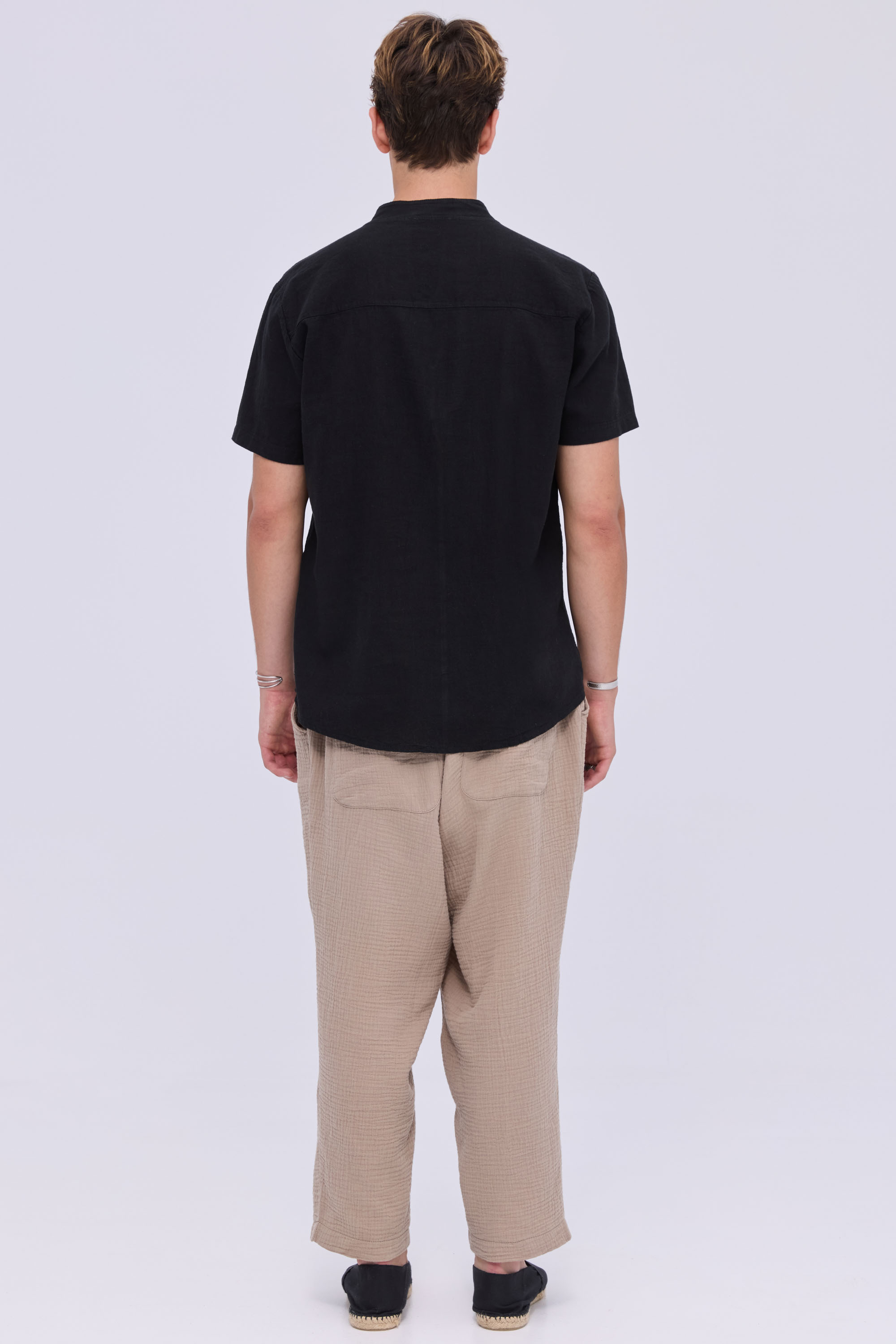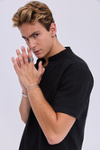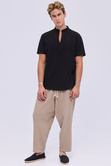Our model wears a size Large, he is 1.84cm tall and weighs 70kg