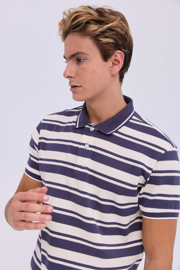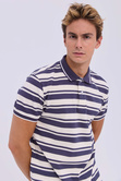 Striped Blue-Beige Knitted Polo Shirt