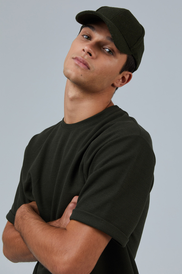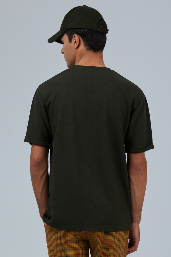 Textured Khaki In Drop Shoulder And Rolled-Up Sleeve