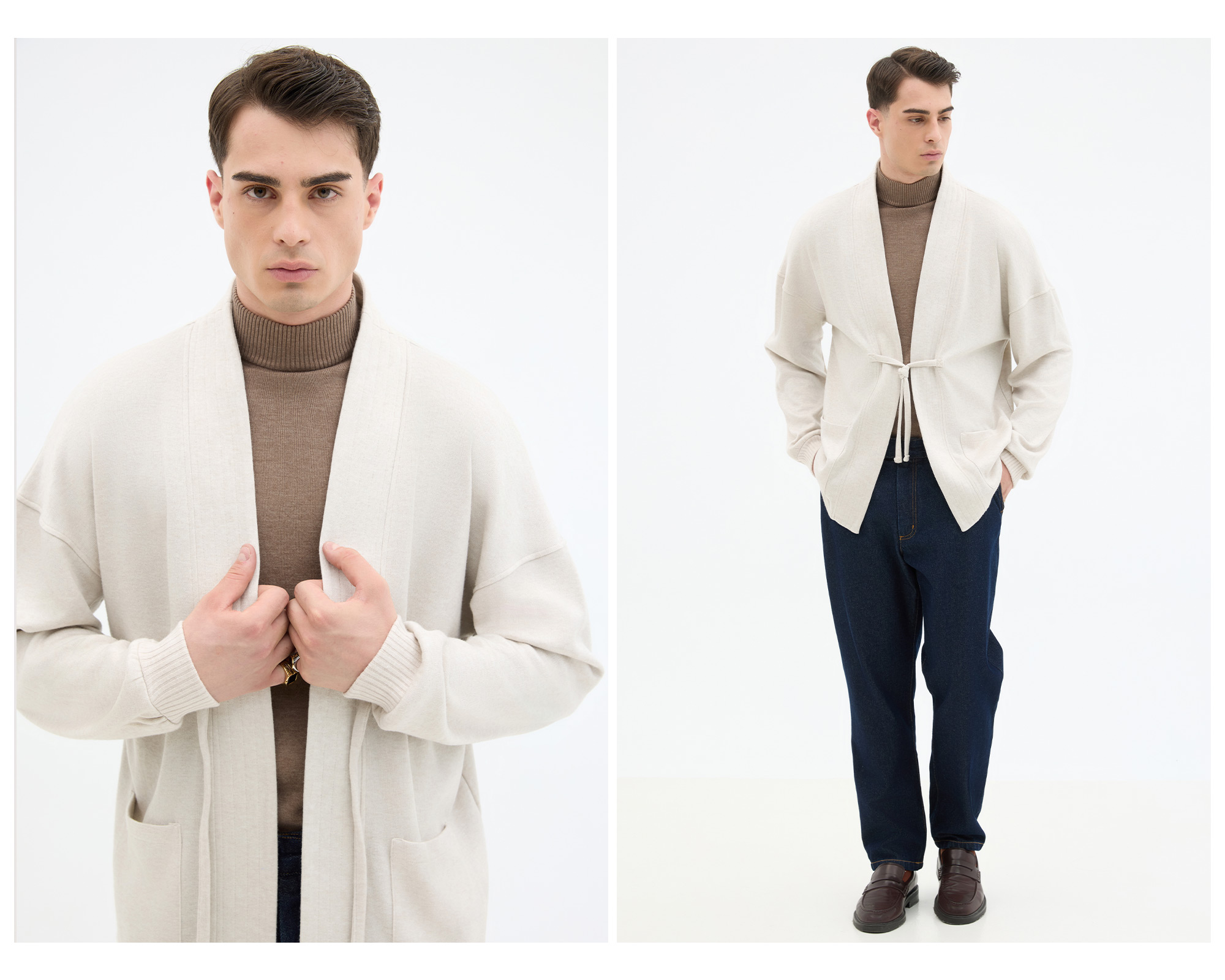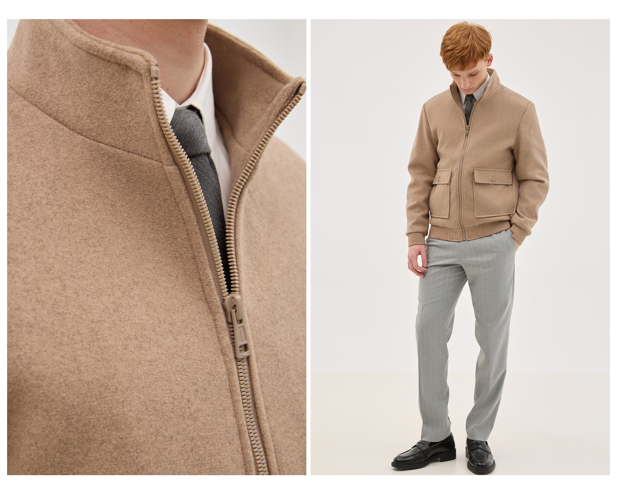 Το τελευταίο επίπεδο πρέπει να κάνει το σύνολο λειτουργικό. Ένα structured coat, ένα minimal jacket ή ένα relaxed overcoat ολοκληρώνουν το layering χωρίς να κρύβουν τα υπόλοιπα κομμάτια.