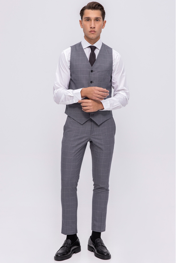 Καρό Ανοικτό Γκρι Με 5 Κουμπιά Σε Στενή Γραμμή