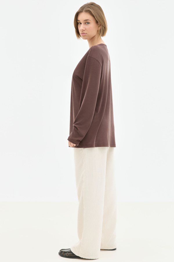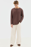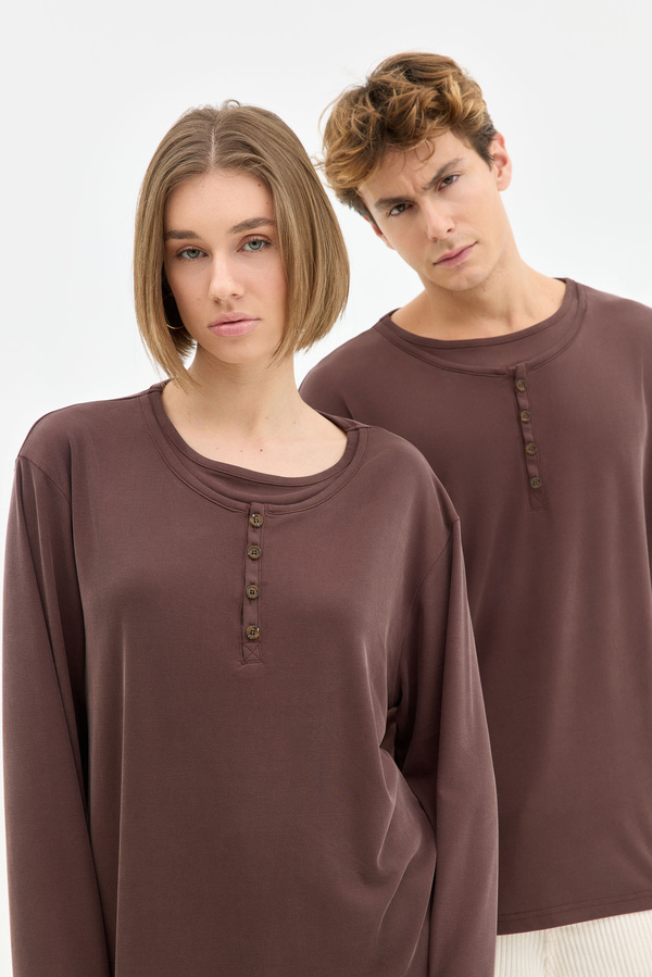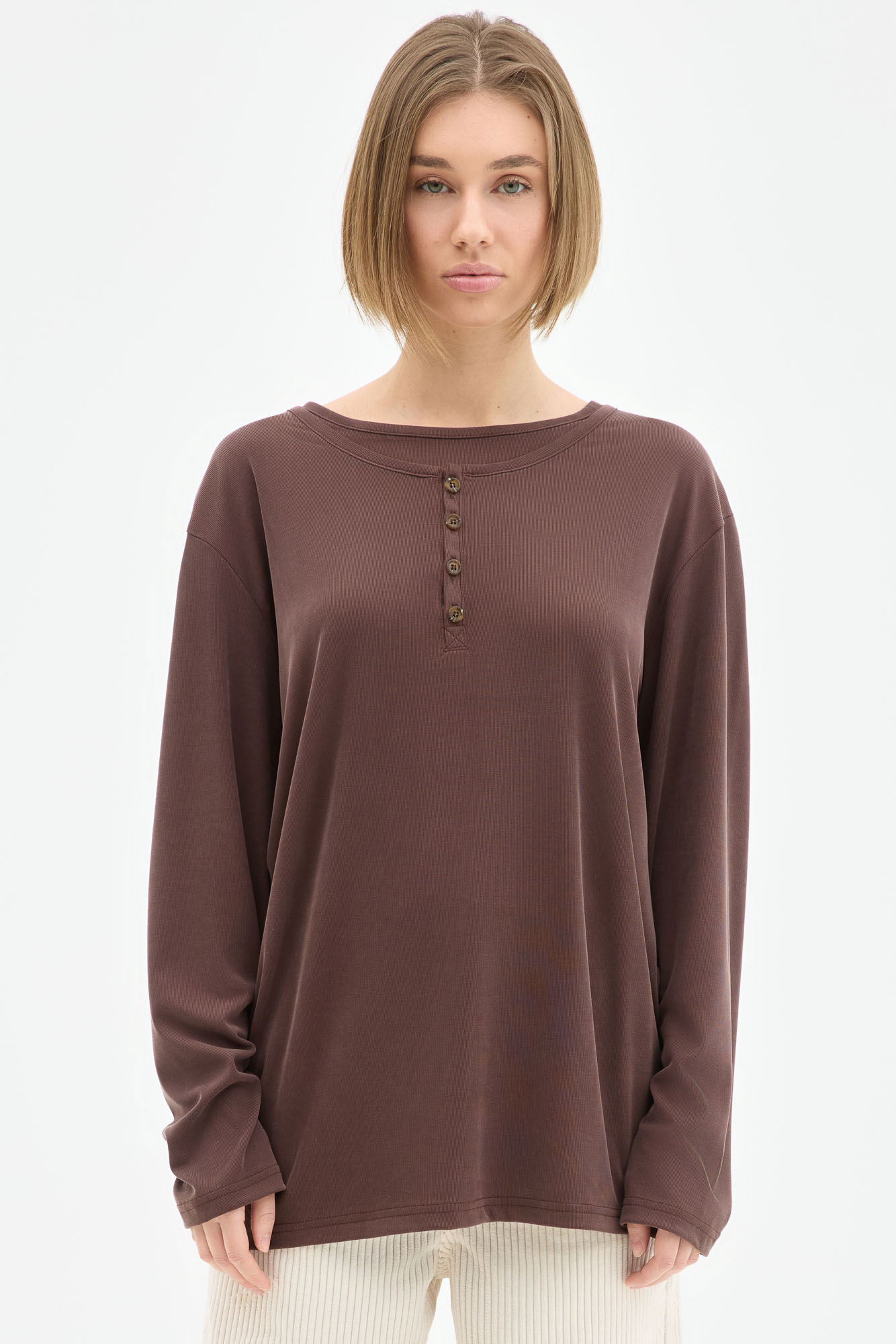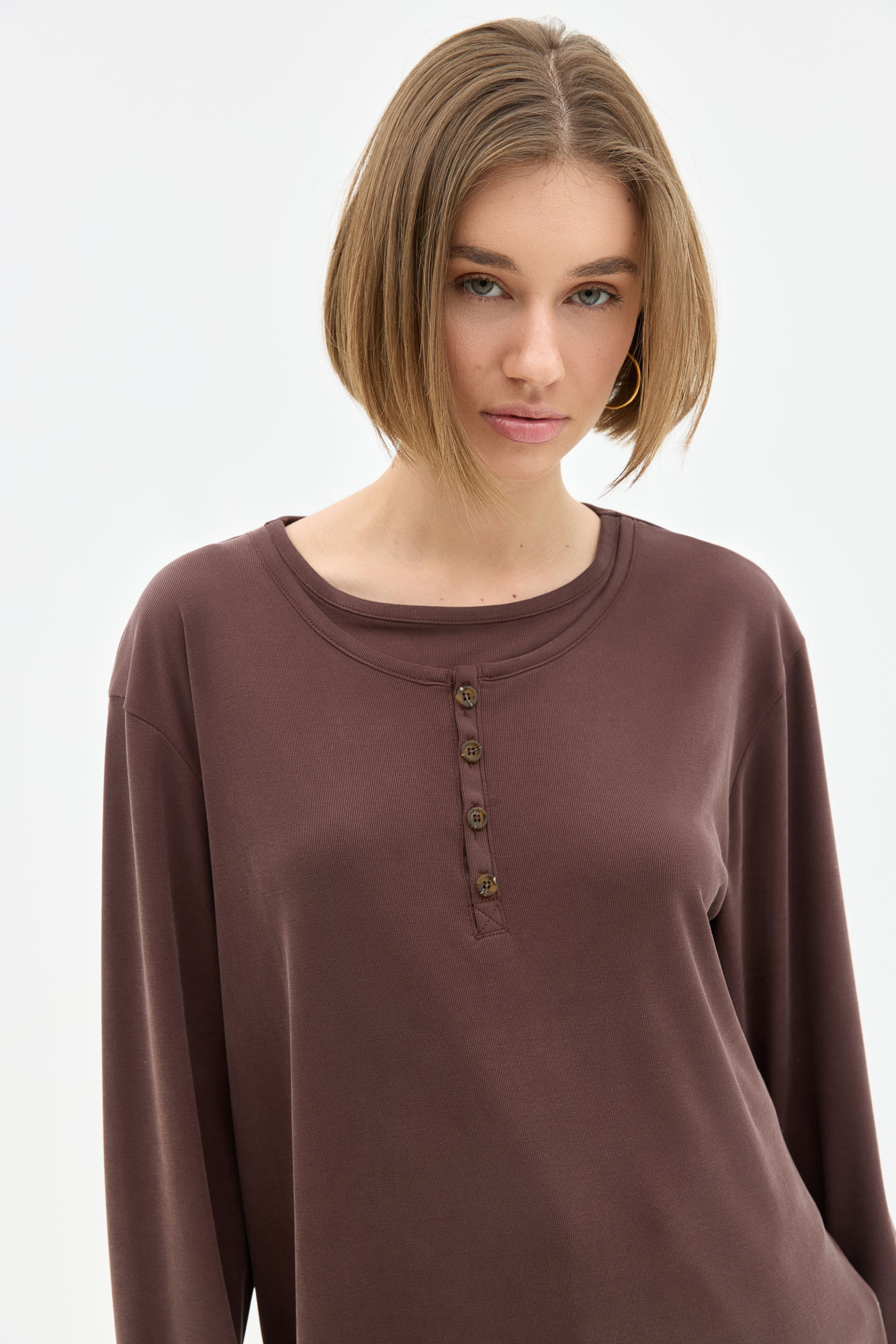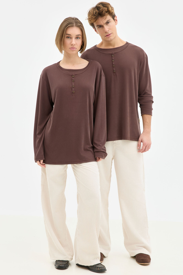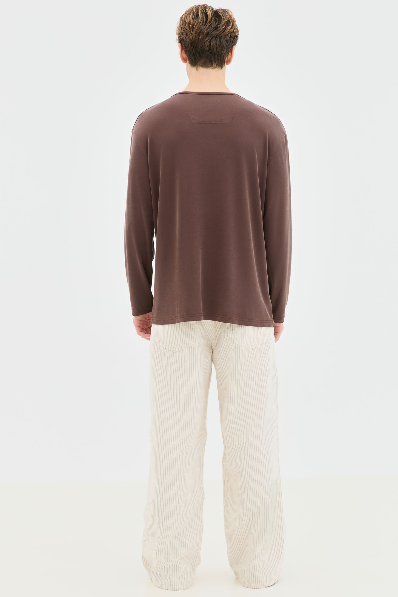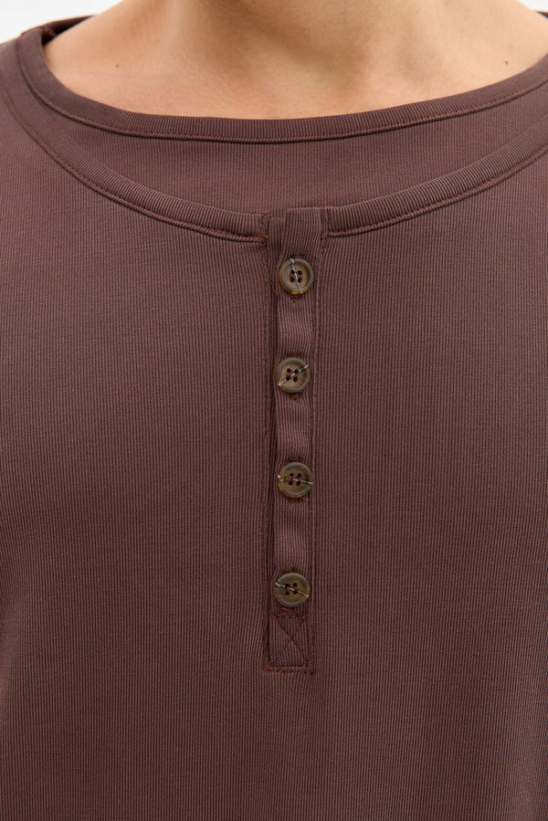Μακρυμάνικο Rib Henley Σε Καφέ