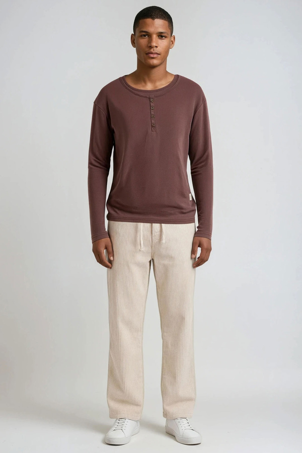 Μακρυμάνικο Rib Henley Σε Καφέ