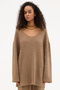Μπεζ Relaxed Πλεκτό Μακρυμάνικο με V Λαιμόκοψη
