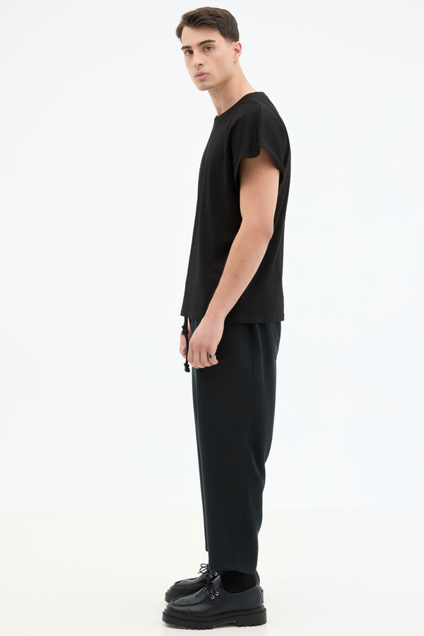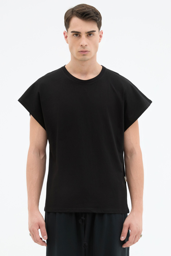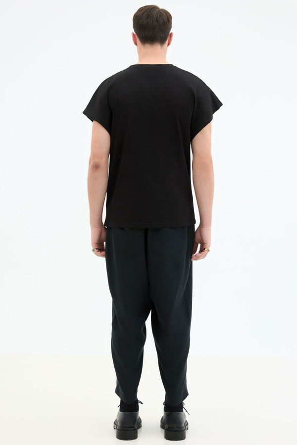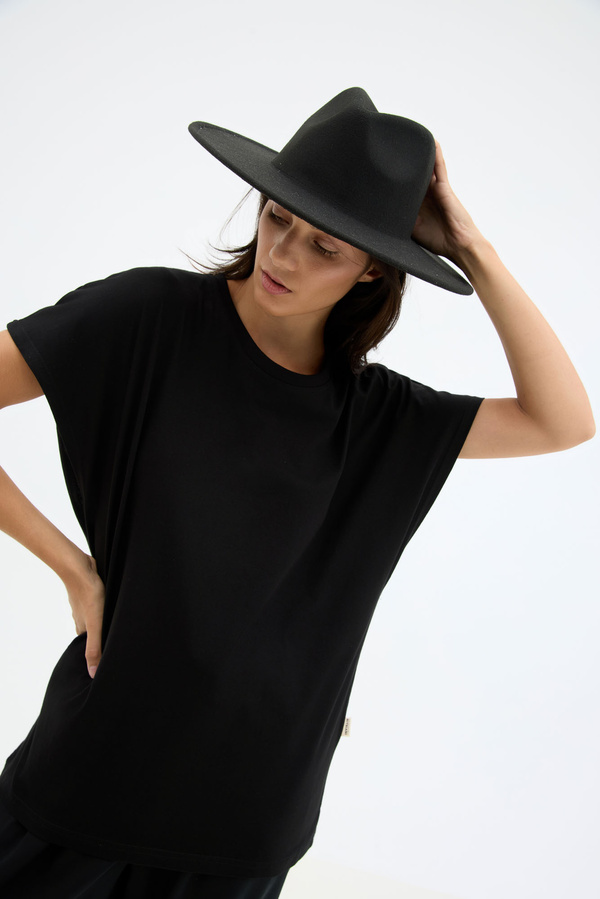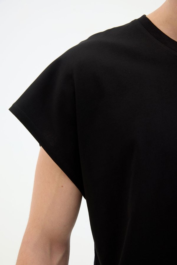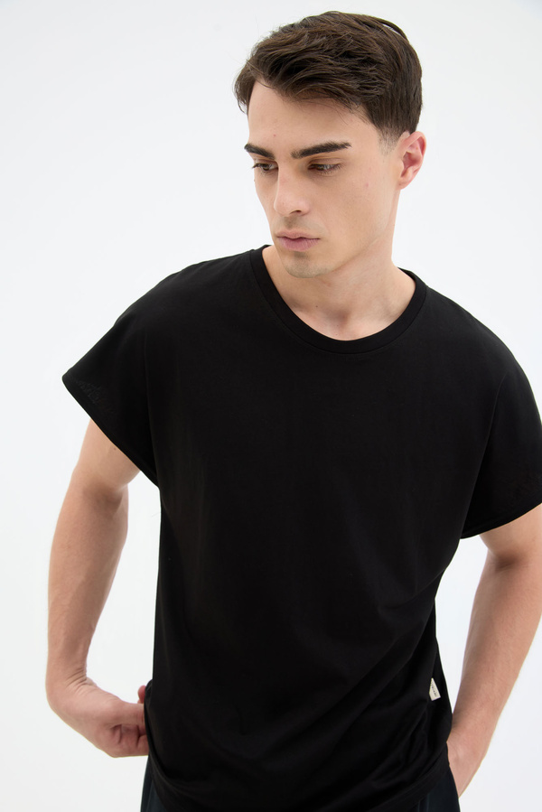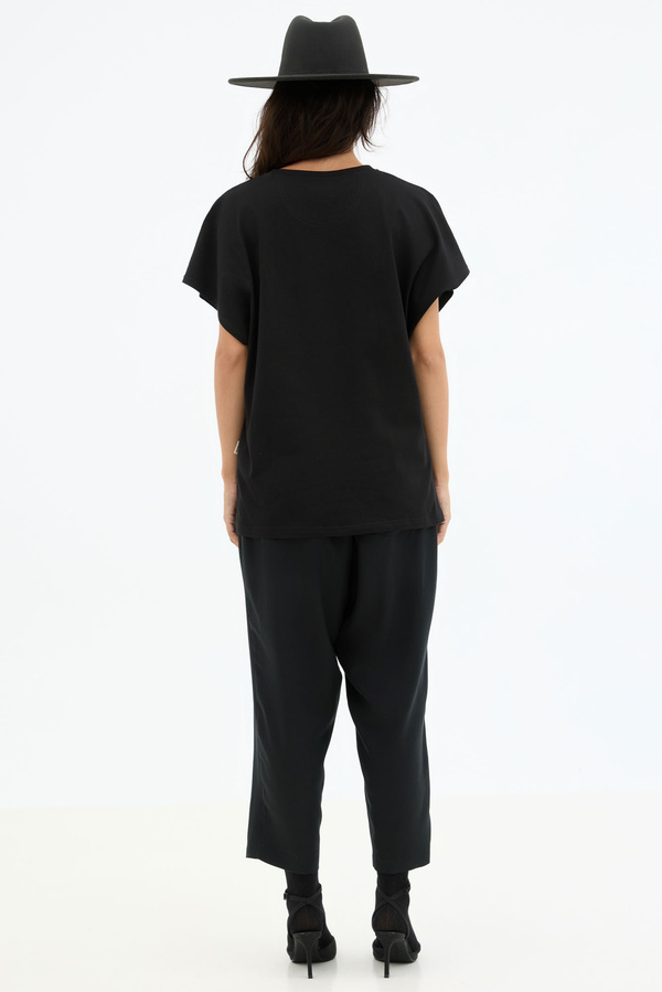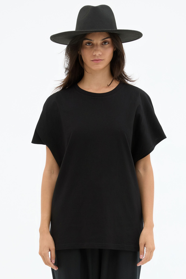 Relaxed Μαύρο Βαμβακερό Με Λοξό Μανίκι