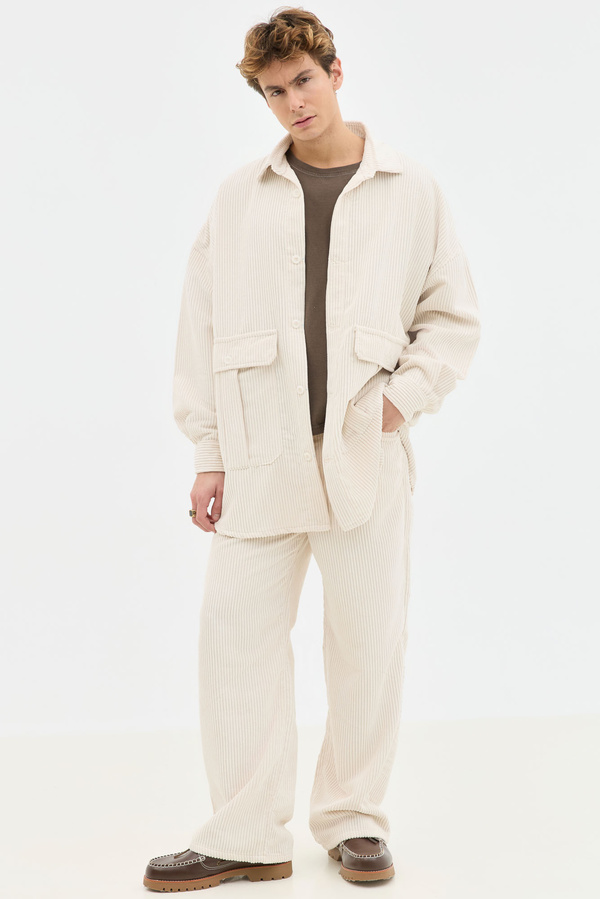 Κοτλέ Εκρού Overshirt Σε Oversized Γραμμή