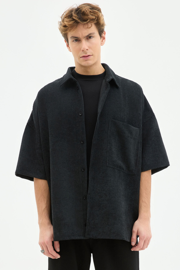 Κοτλέ Μαύρο Κοντομάνικο Σε Oversized Γραμμή