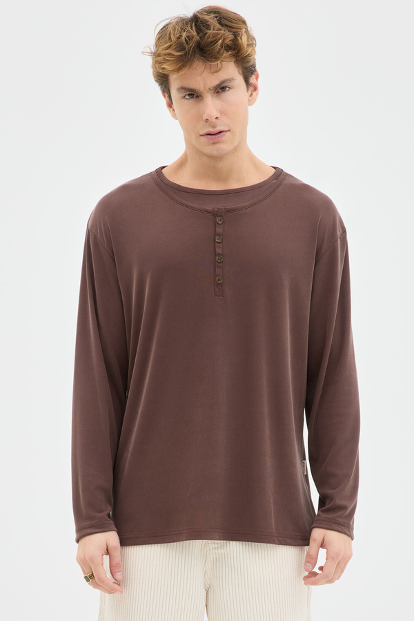 Μακρυμάνικο Rib Henley Σε Καφέ