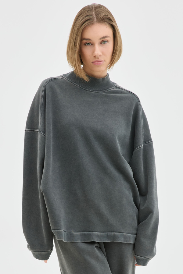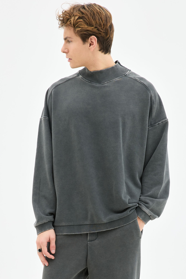 Boxy Γκρι Φούτερ Με Ψηλή Λαιμόκοψη Acid Wash