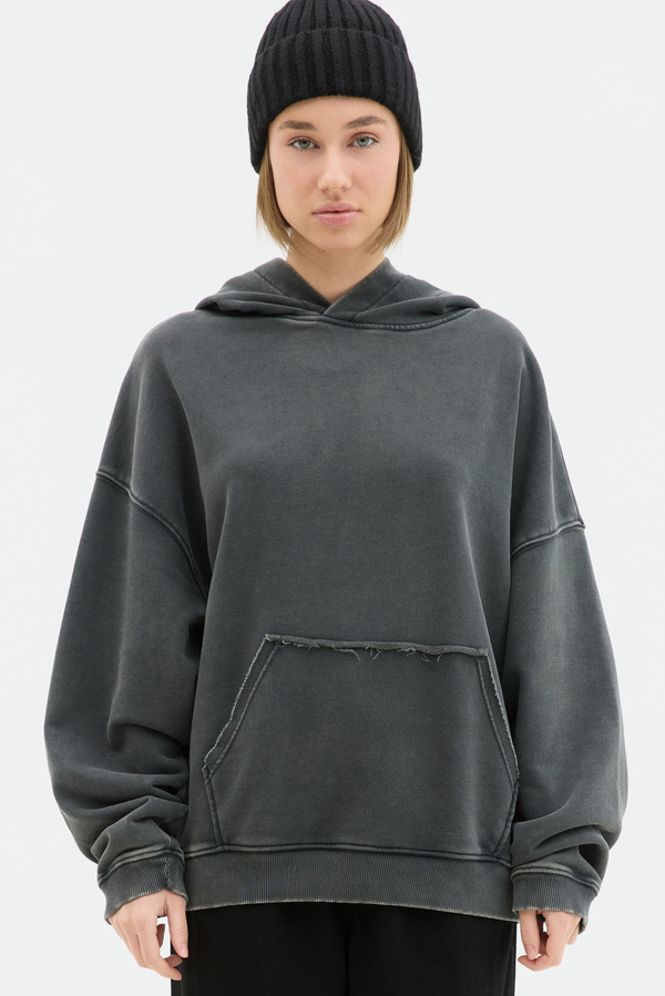 Γκρι Boxy Acid Wash Φούτερ Με Κουκούλα