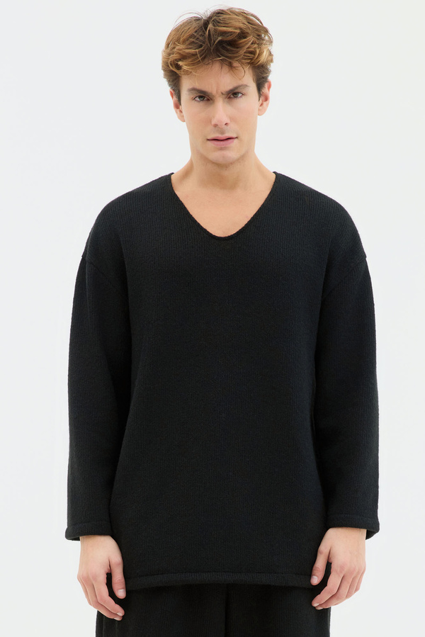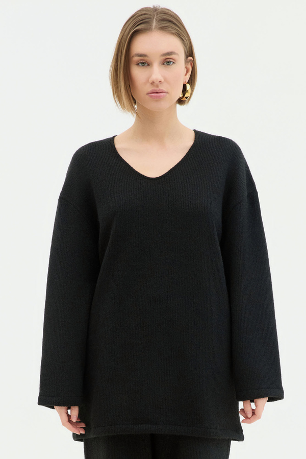 Μαύρη Relaxed Μακρυμάνικη με V Λαιμόκοψη