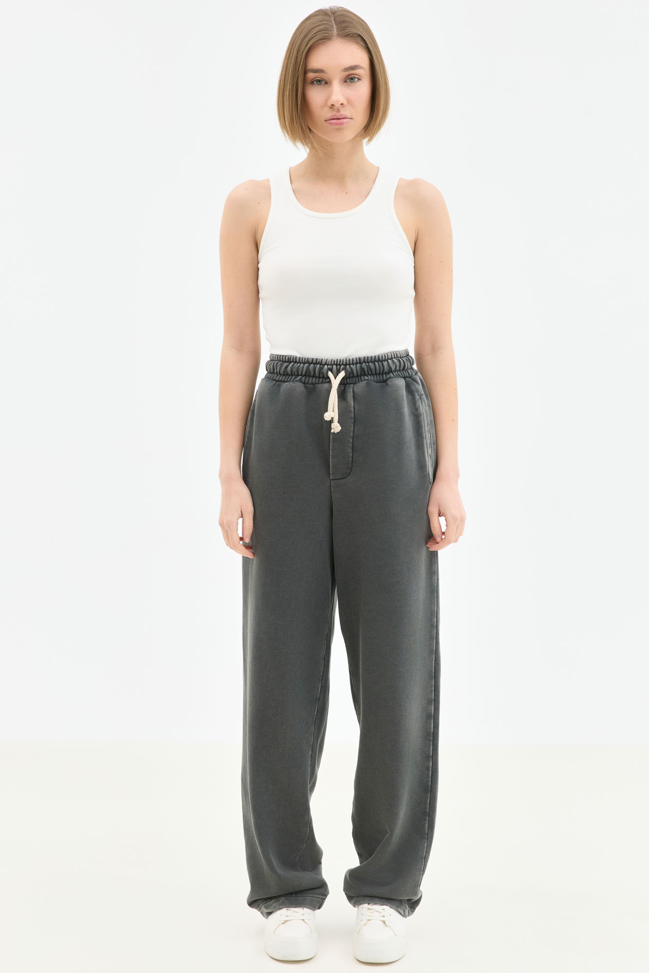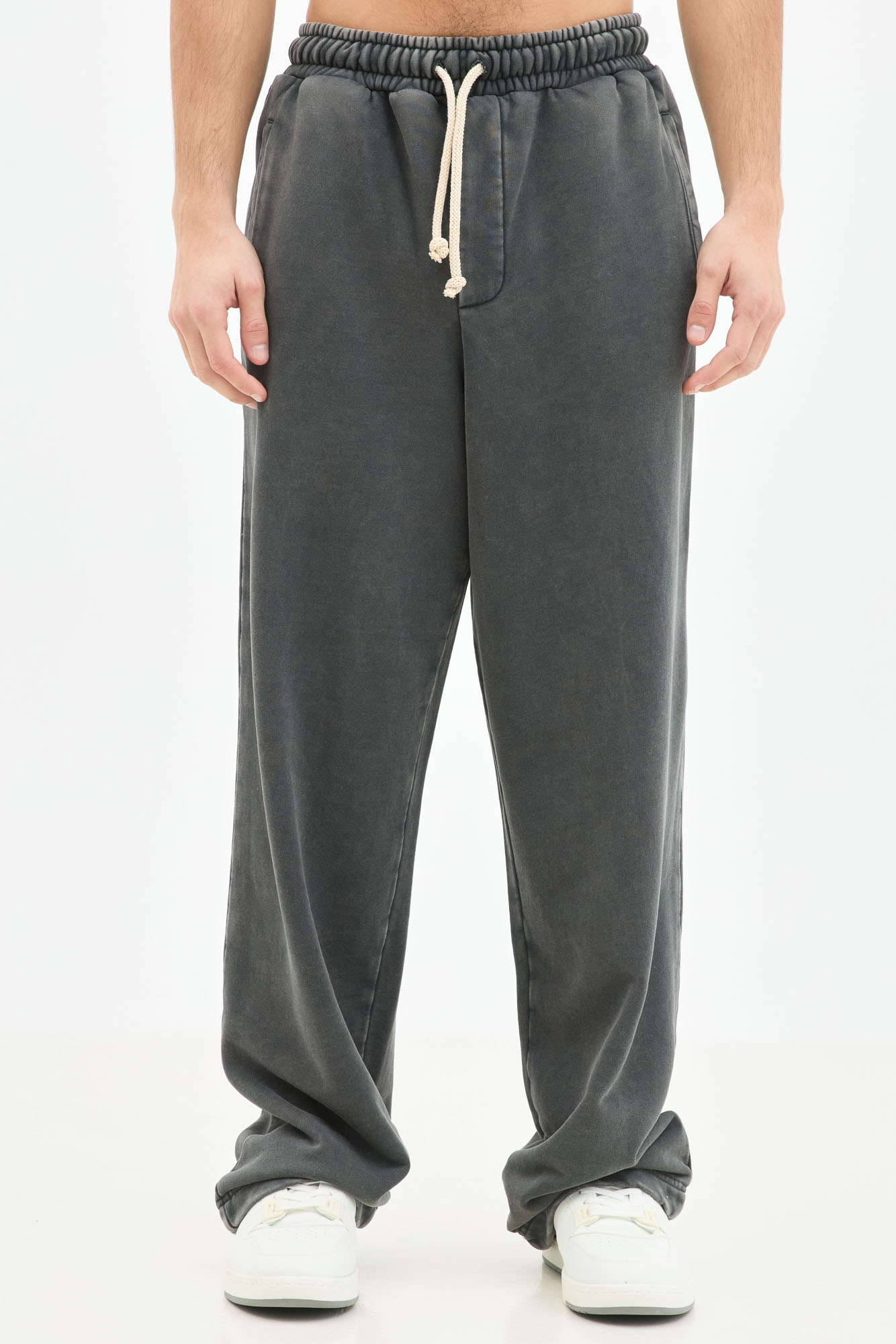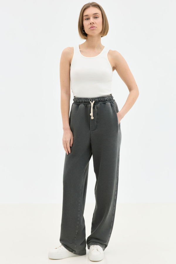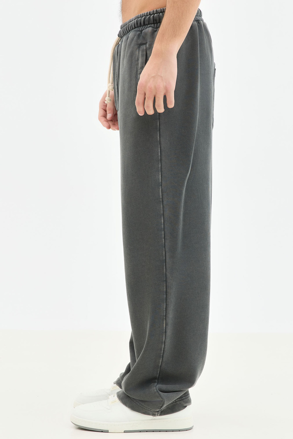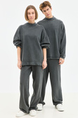 Φούτερ Acid Wash Wide Leg Σε Γκρι Με Κορδόνι