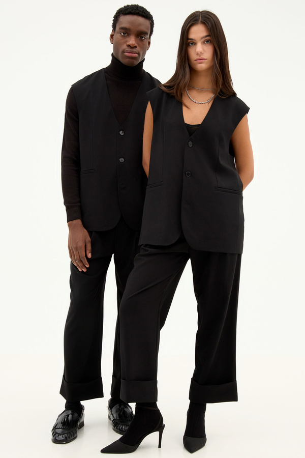 Μαύρο Wide Leg Με Ρεβέρ