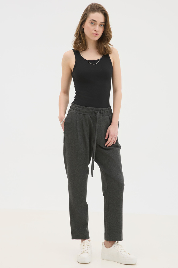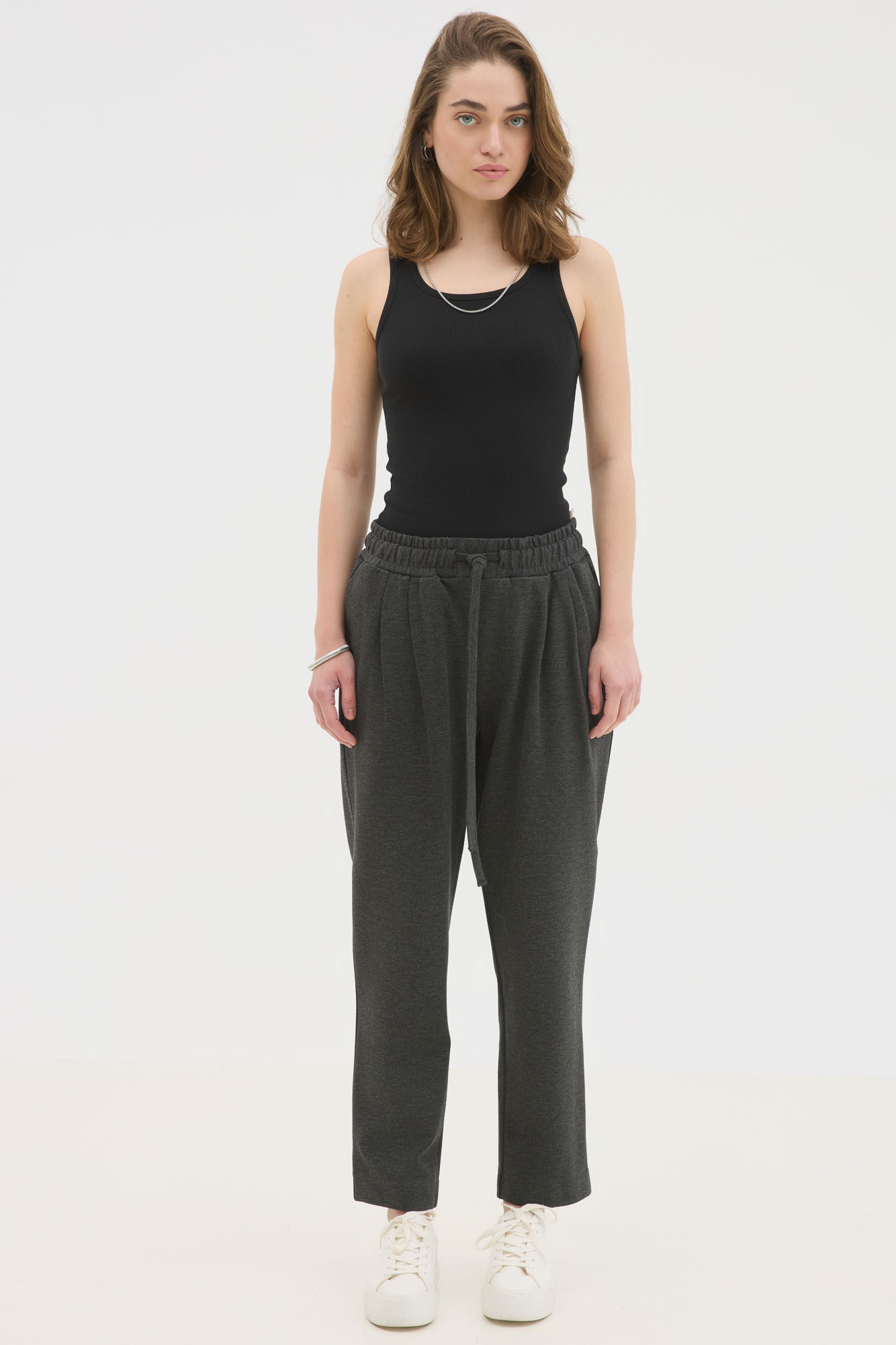 Relaxed Γκρι Με Πιέτες Και Κορδόνι Στο Ζωνάρι