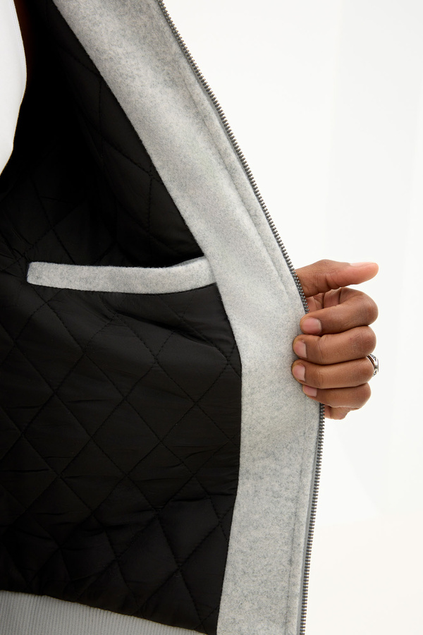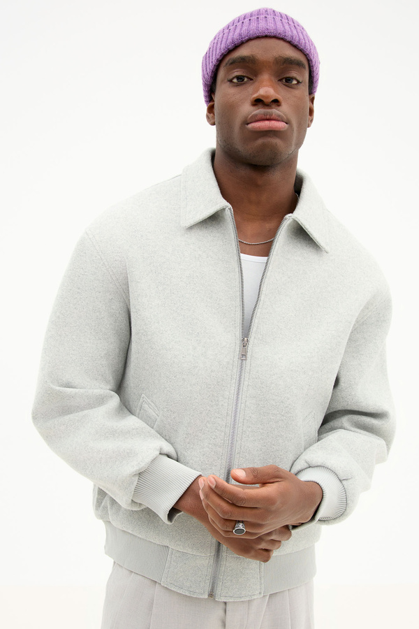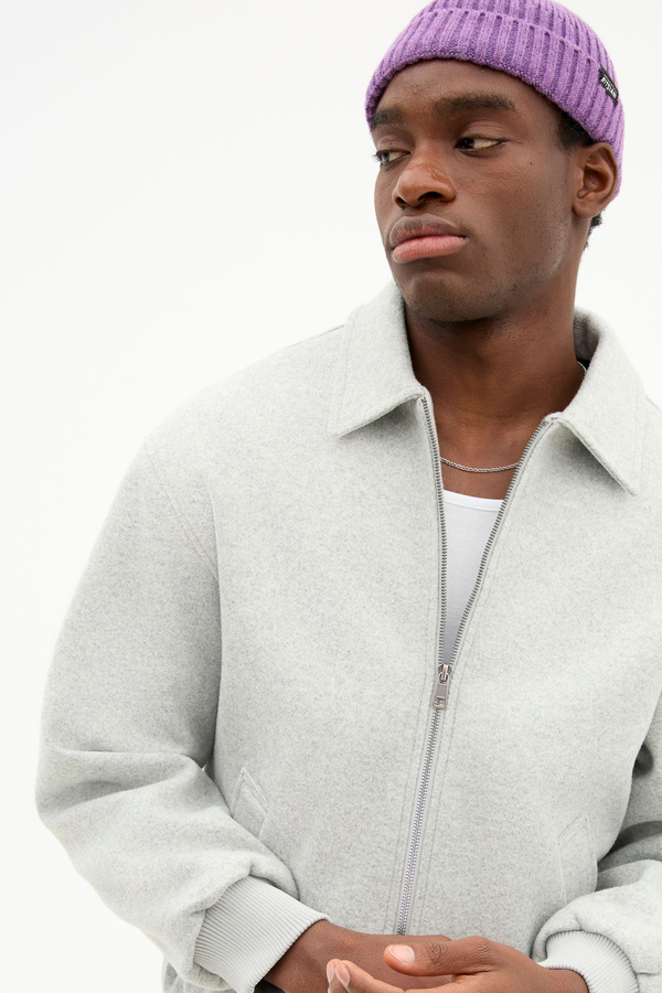 Ανοιχτό Γκρι Harrington Με Pointed Κολάρο Και Φερμουάρ