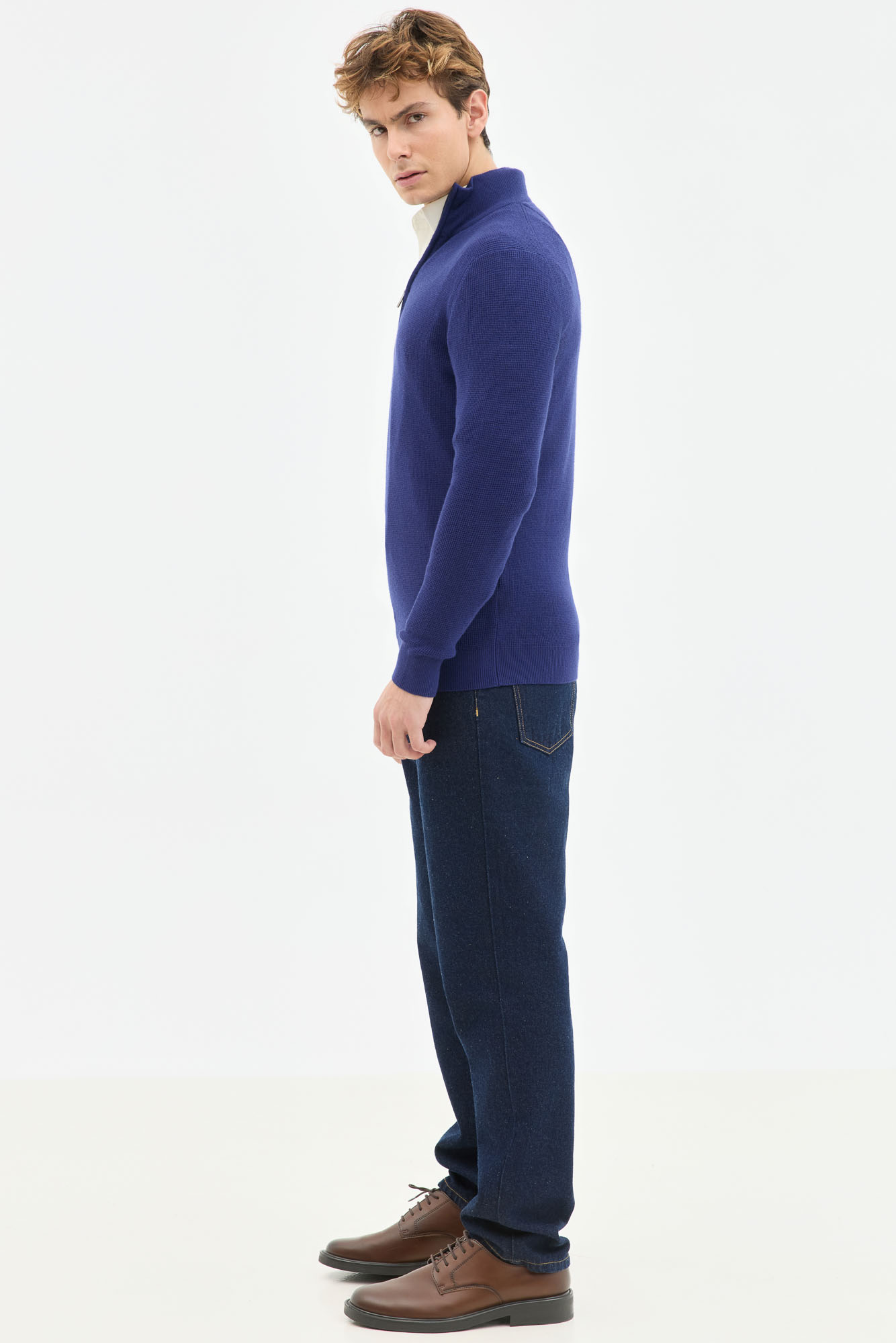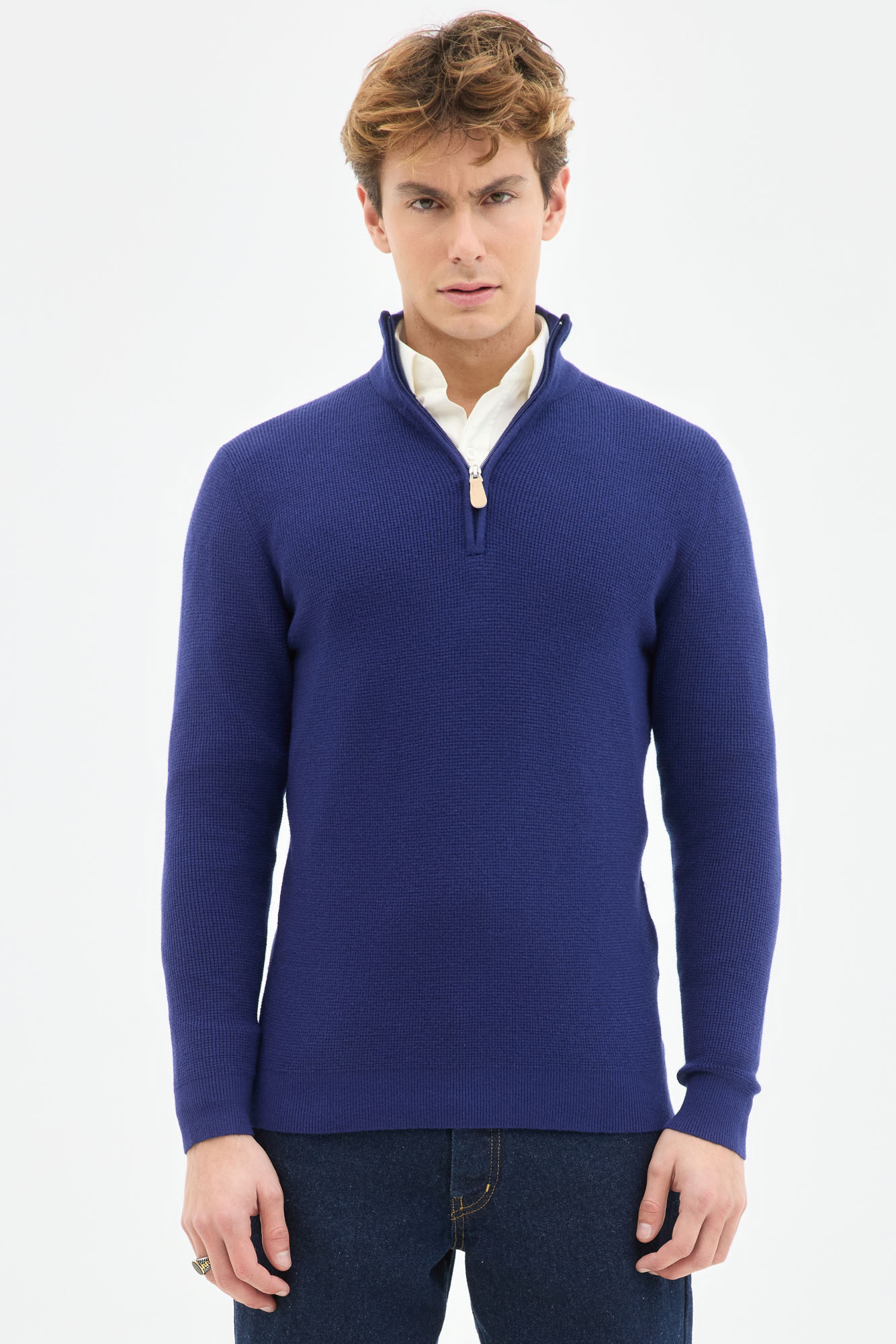 Μπλε Half Zip Με Ψηλό Κολάρο