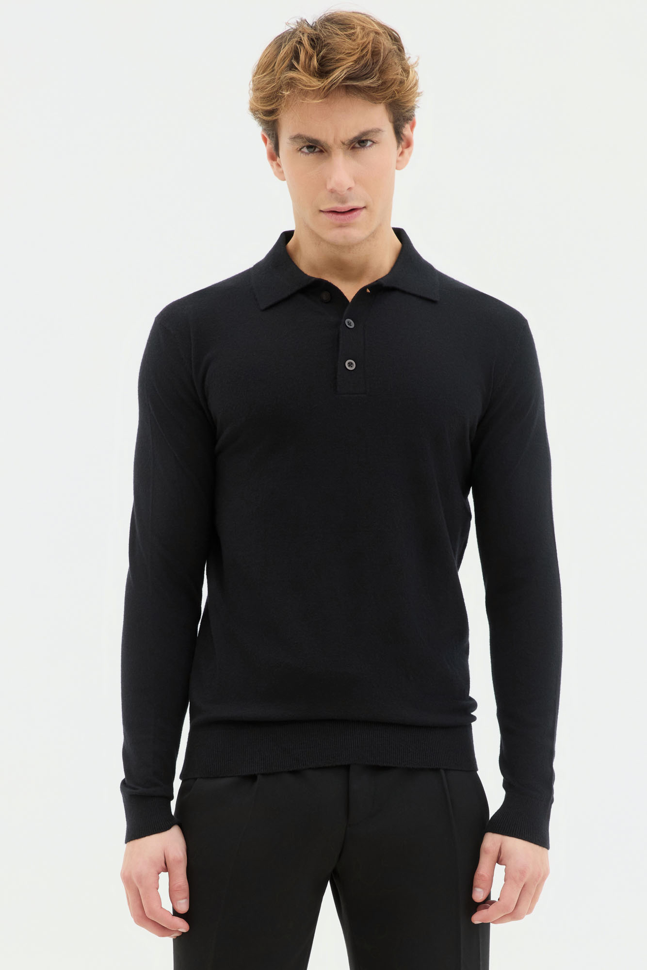 Μακρυμάνικο Polo Μαύρο Σε Κανονική Γραμμή