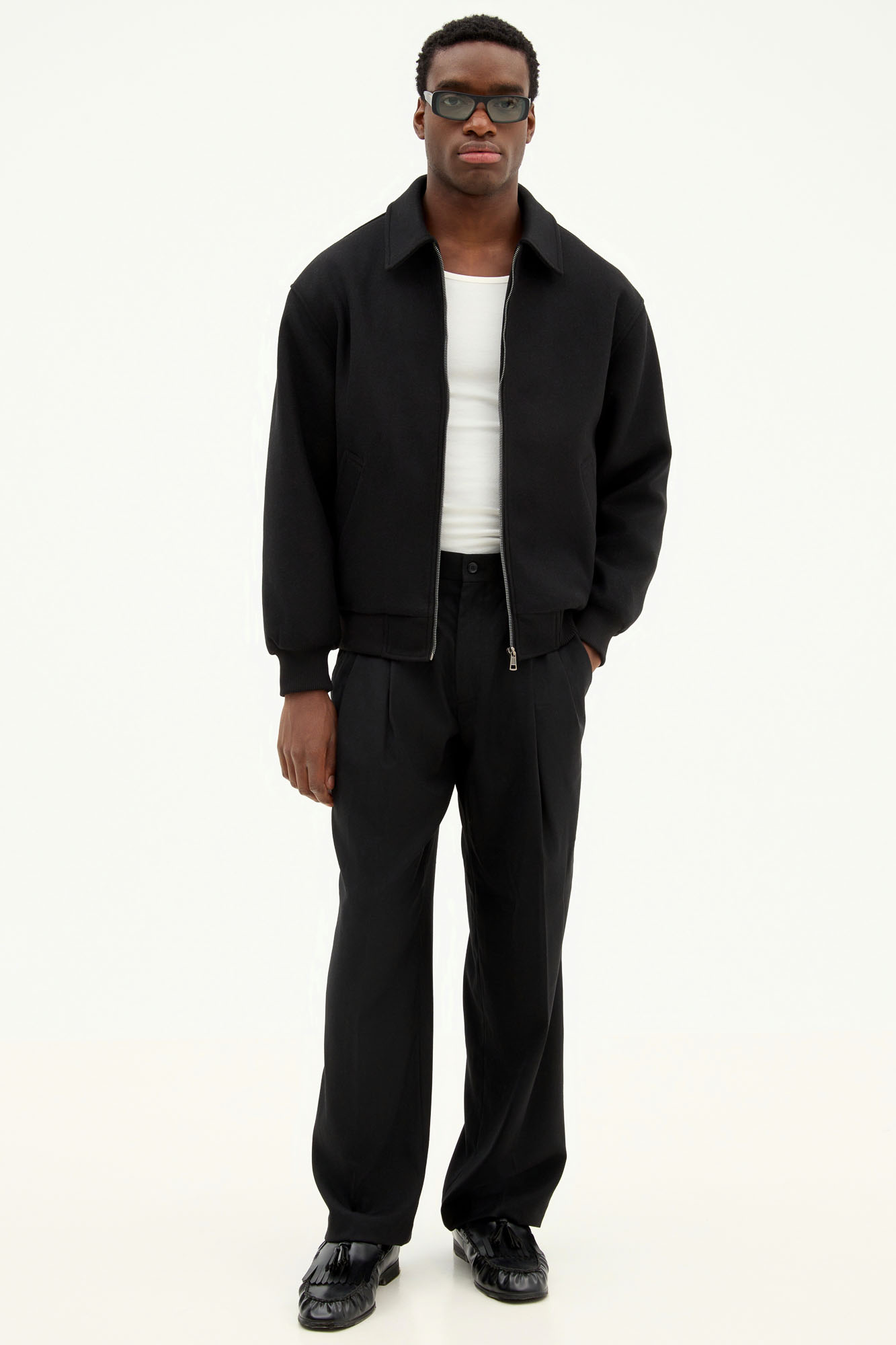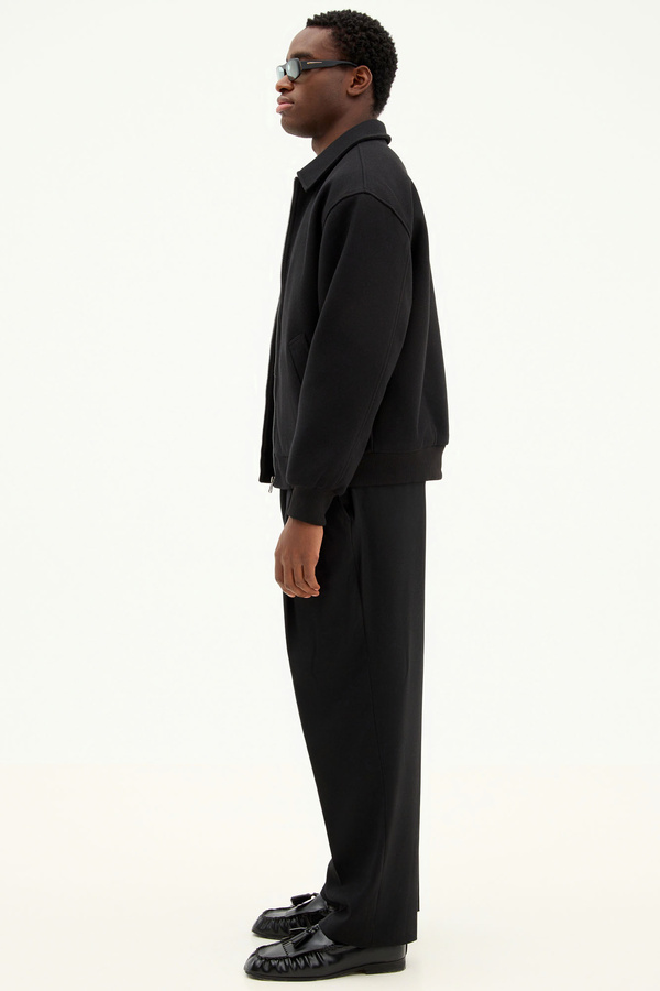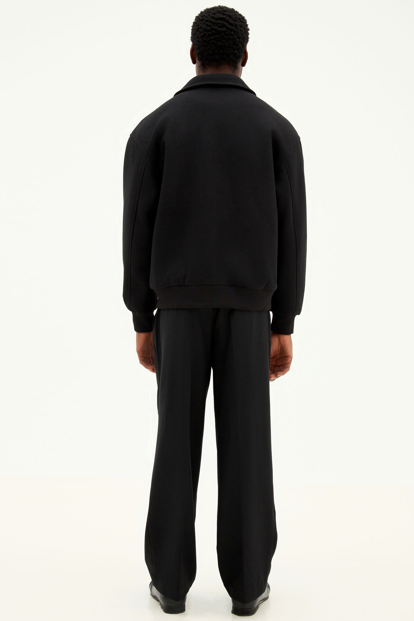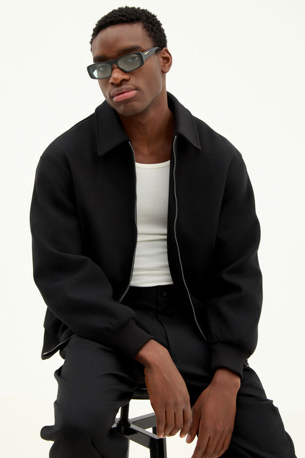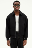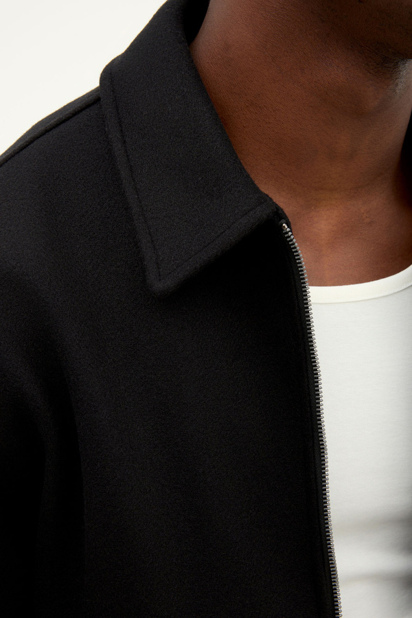 Μαύρη Harrington Με Pointed Κολάρο Και Φερμουάρ