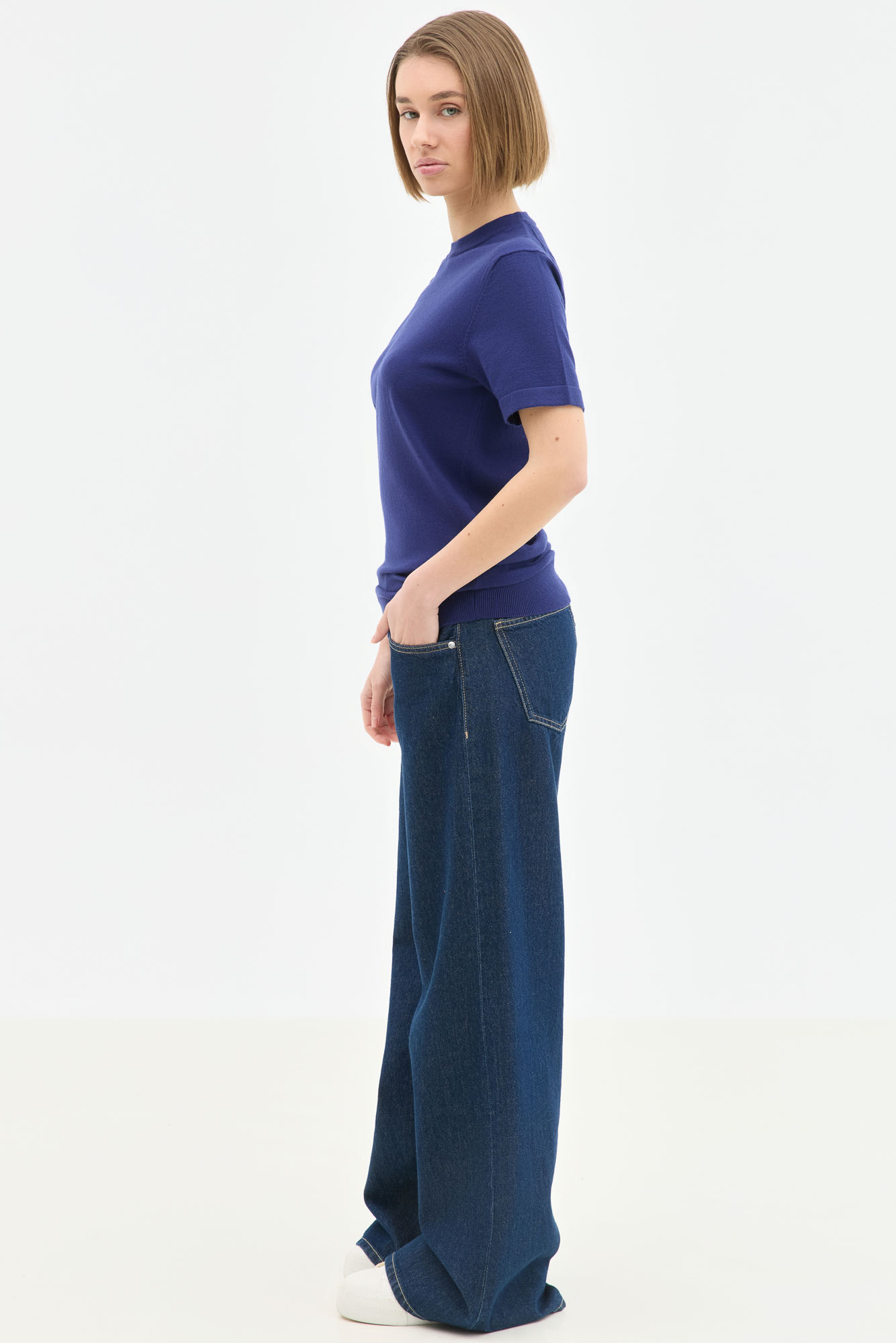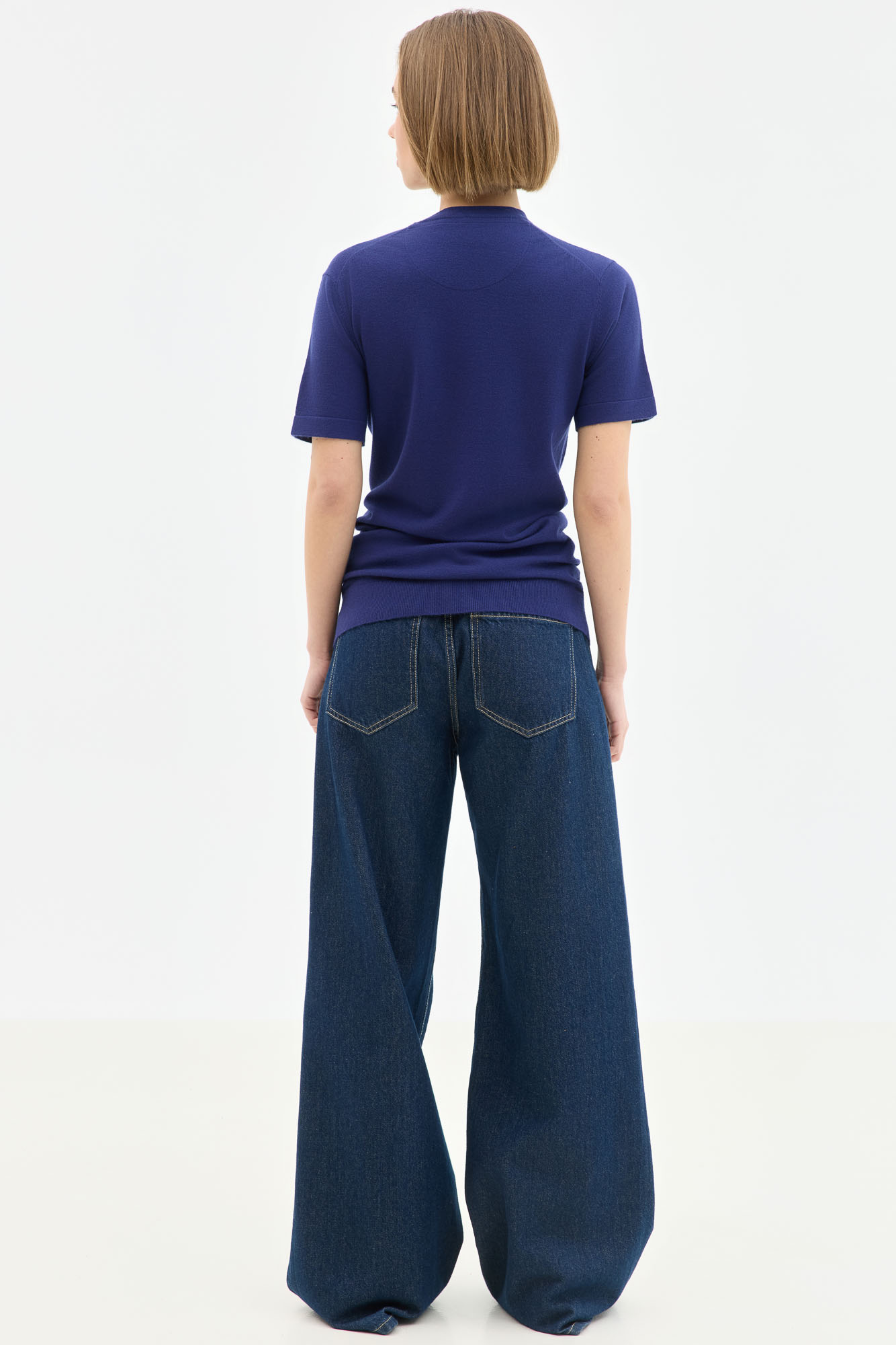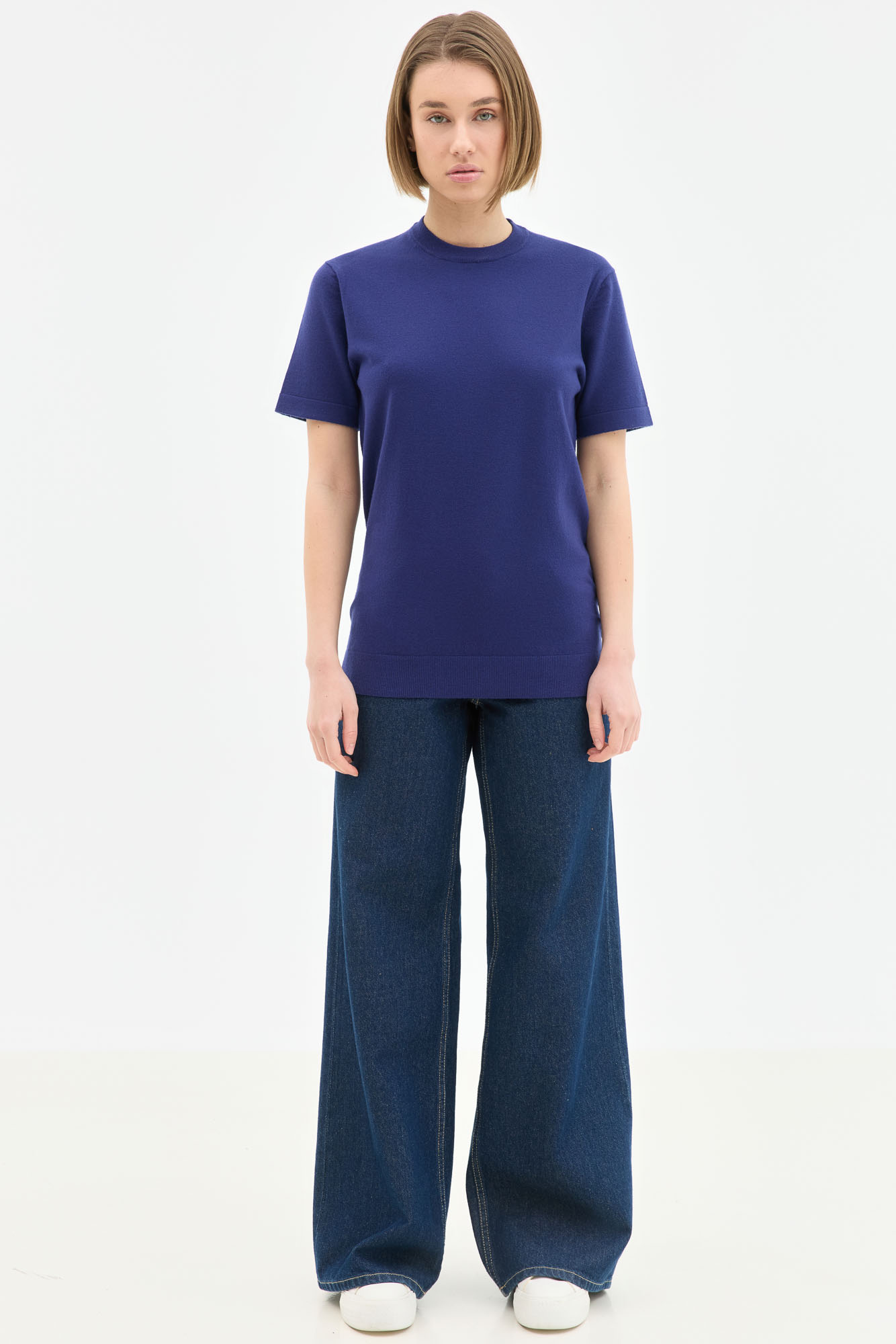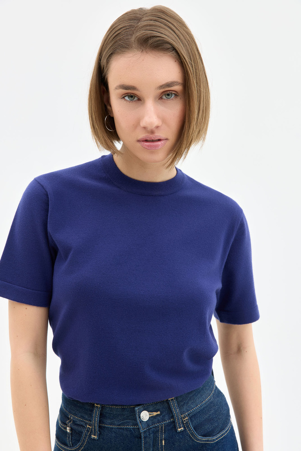 Κοντομάνικο Με Στρόγγυλη Λαιμόκοψη Σε Μπλε