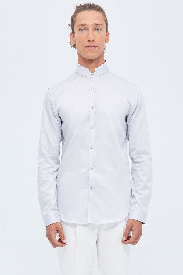 Γκρι Σε Στενή Γραμμή Με Mandarin Κολάρο