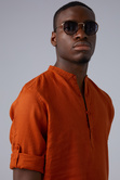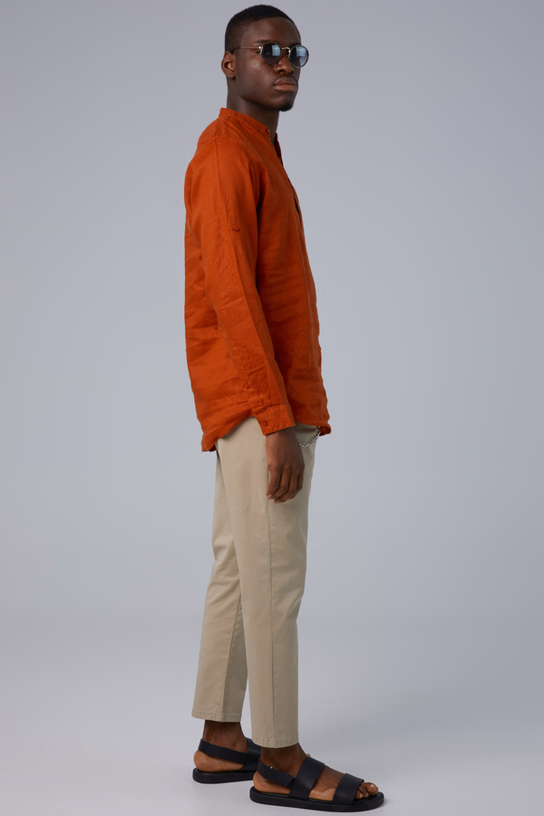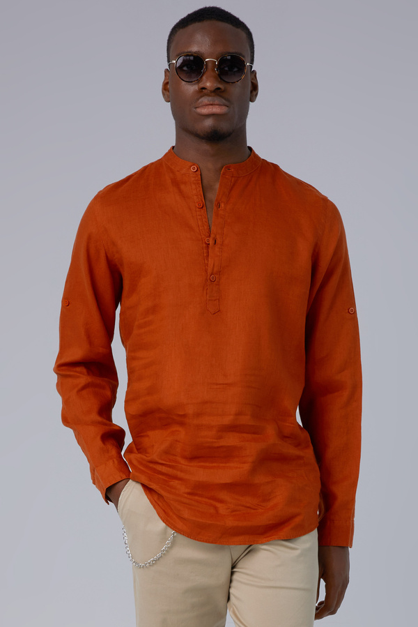 Κεραμιδί Λινό Μπλουζοπουκάμισο Σε Κανονική Γραμμή