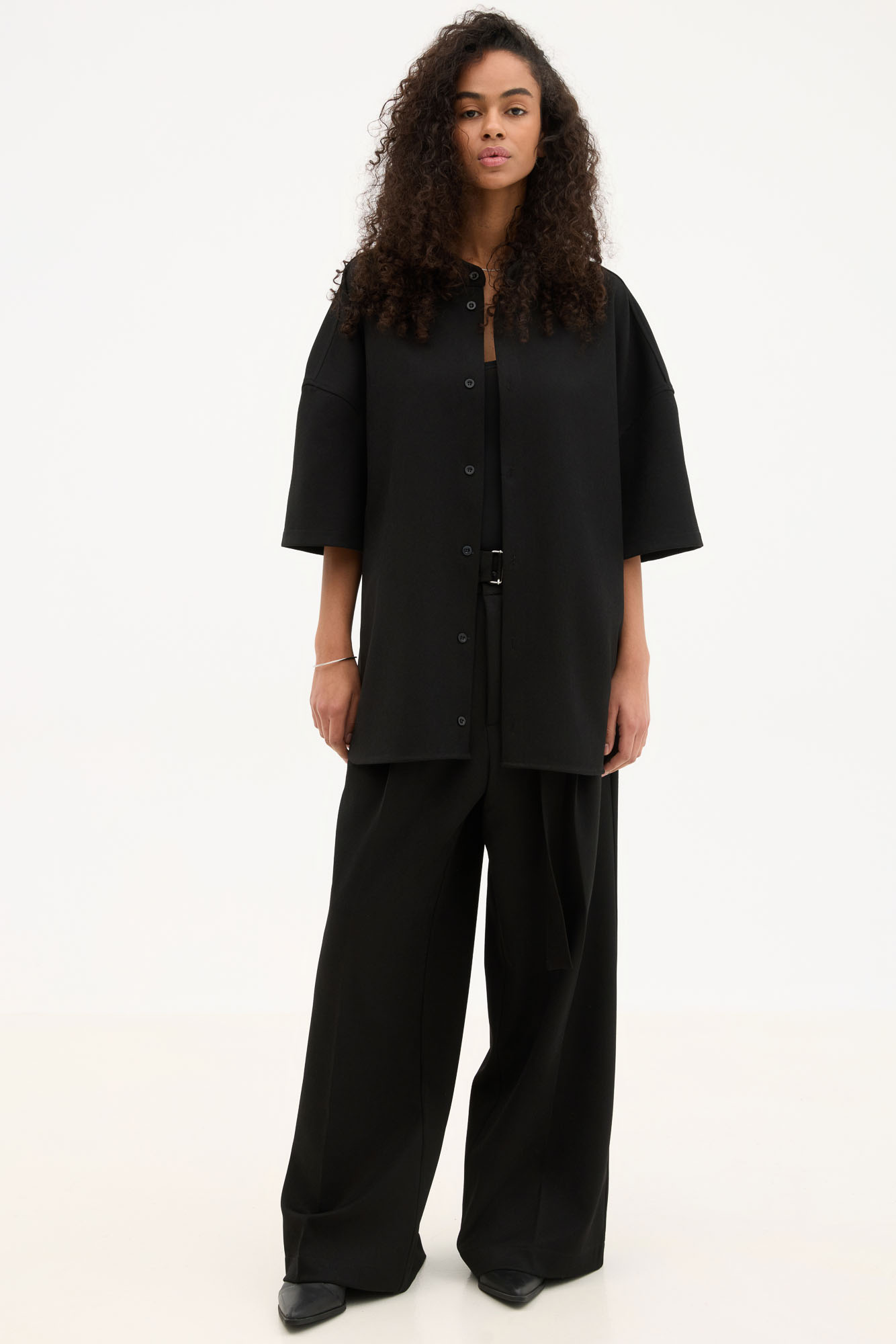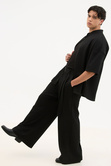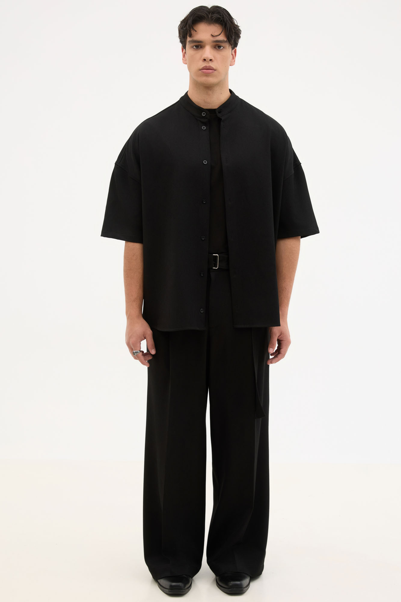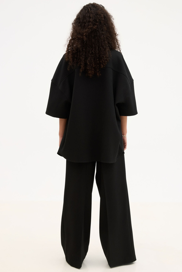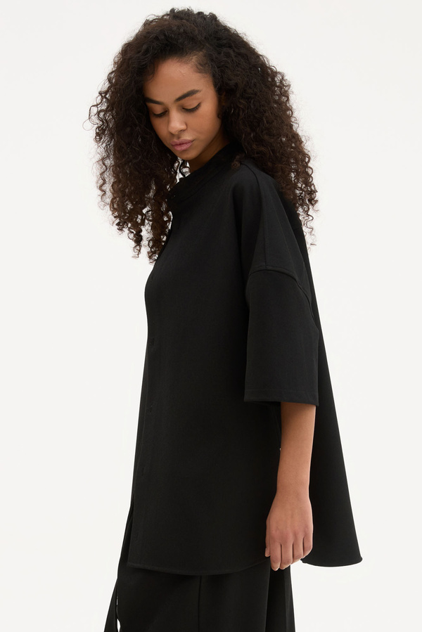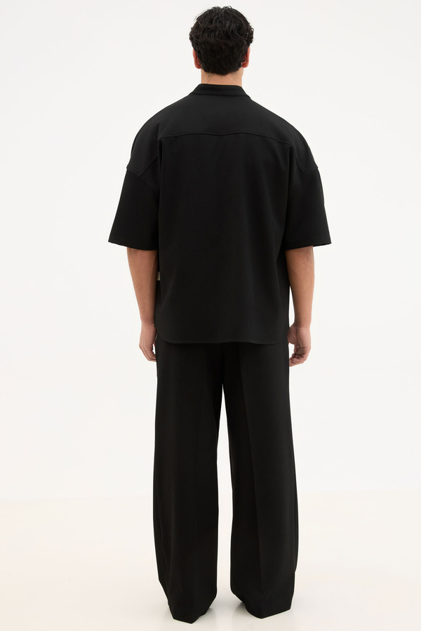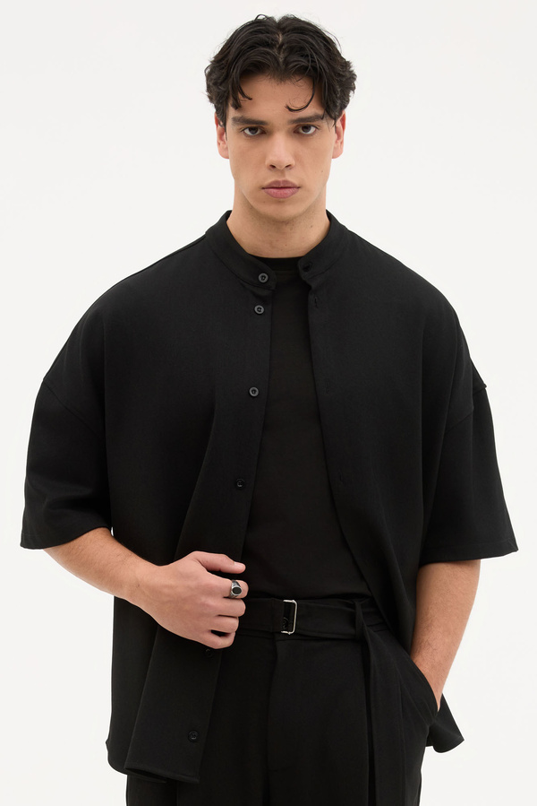 Κοντομάνικο Relaxed Μαύρο Με Grandad Κολάρο