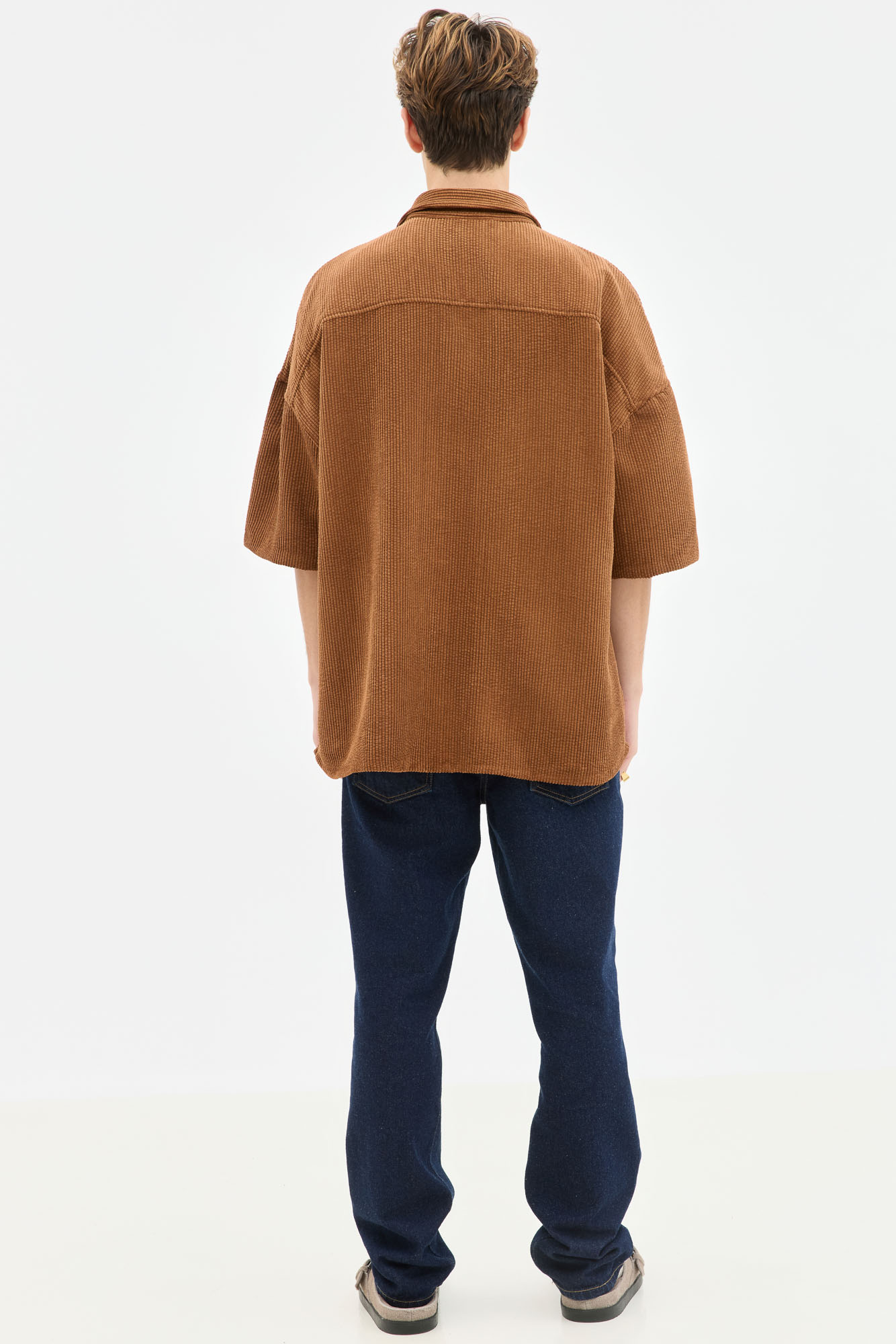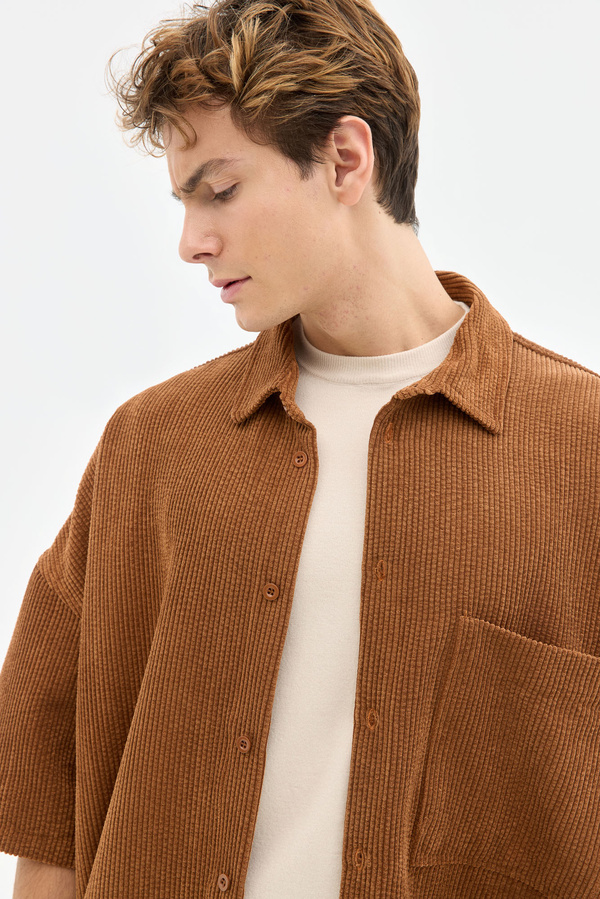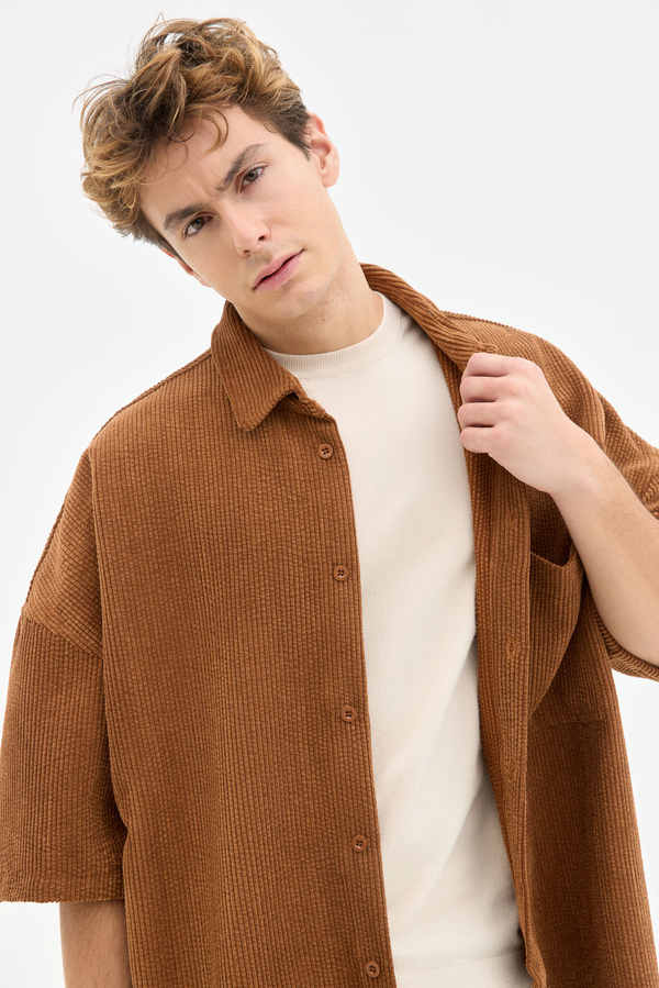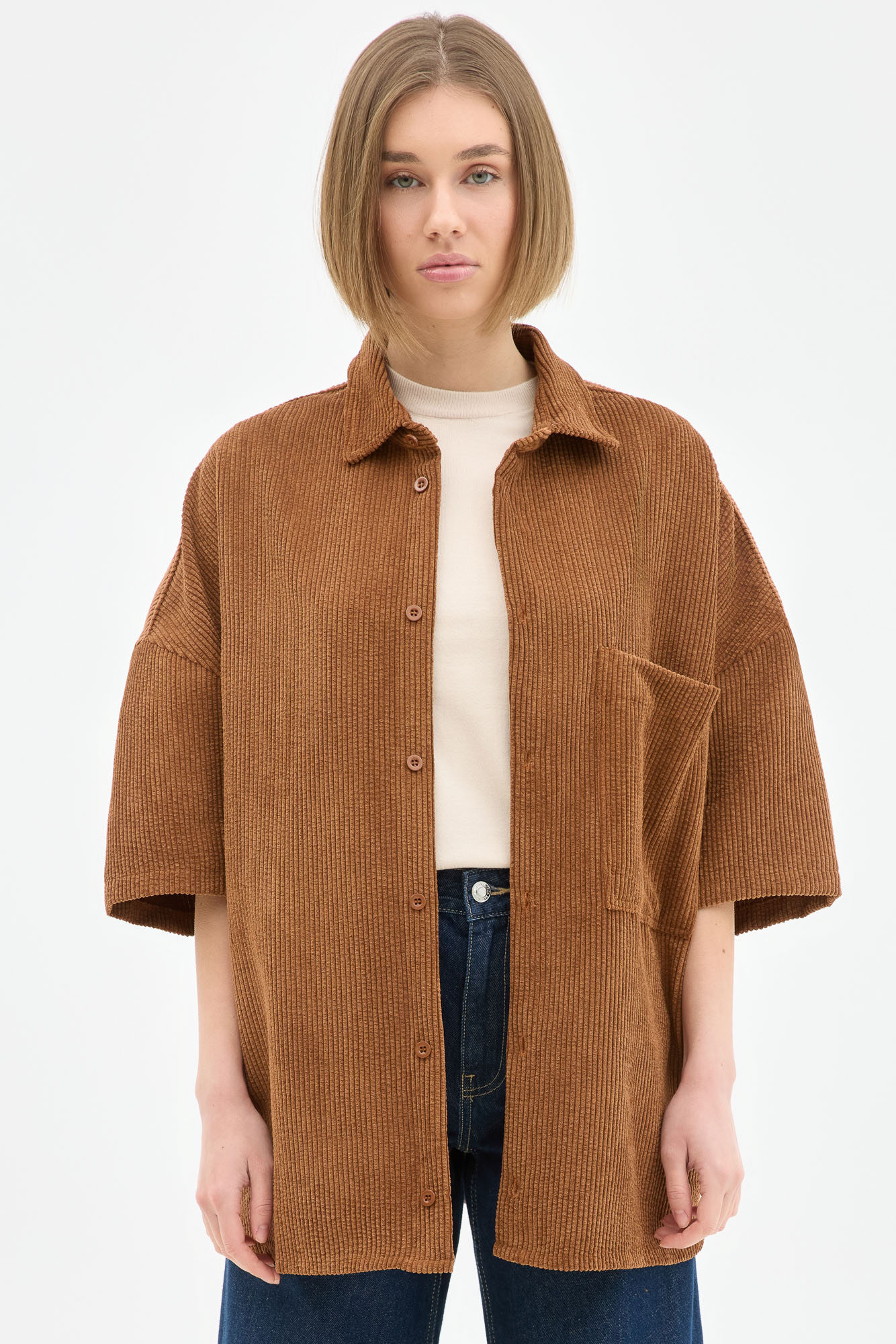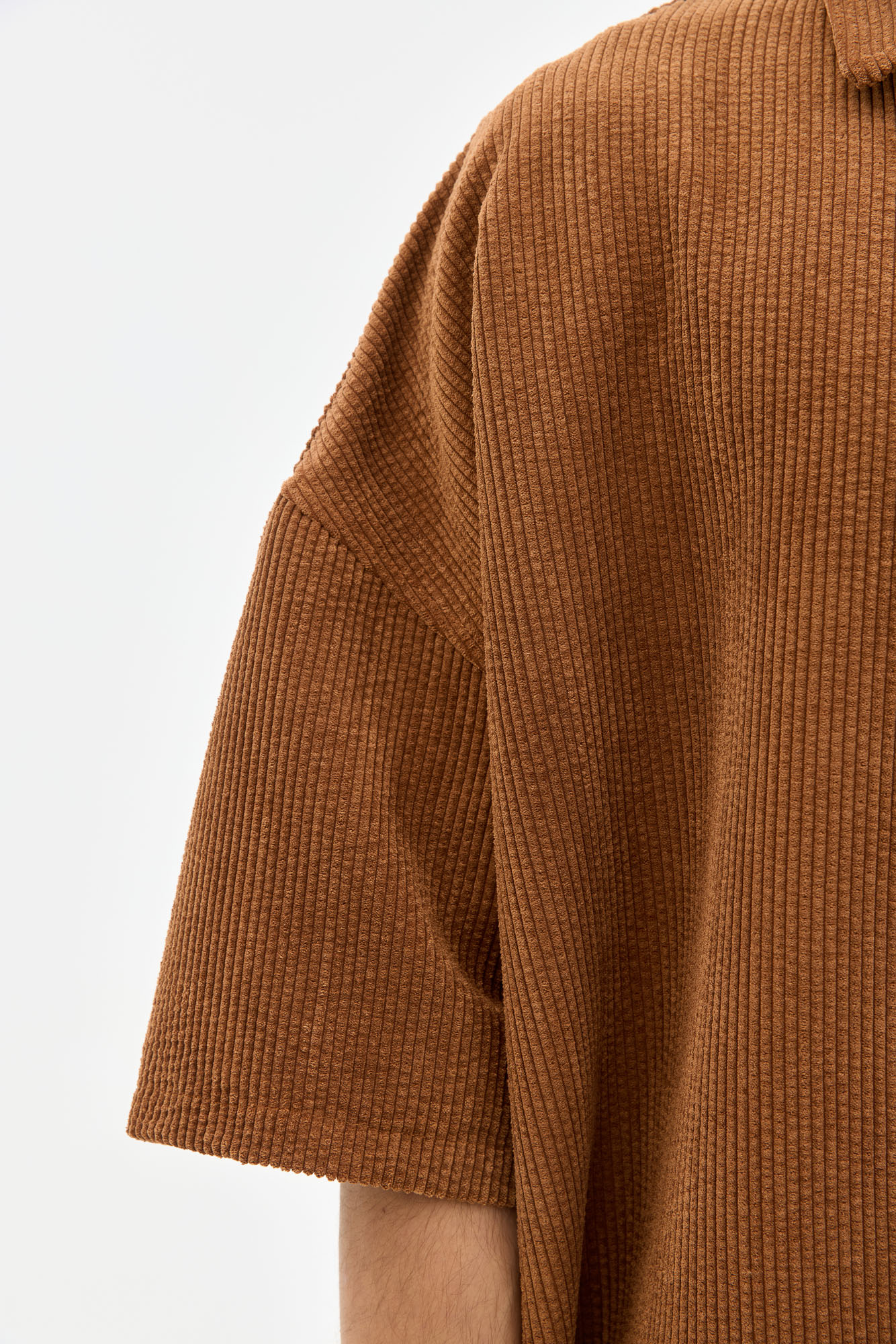 Κοτλέ Καφέ Κοντομάνικο Σε Oversized Γραμμή