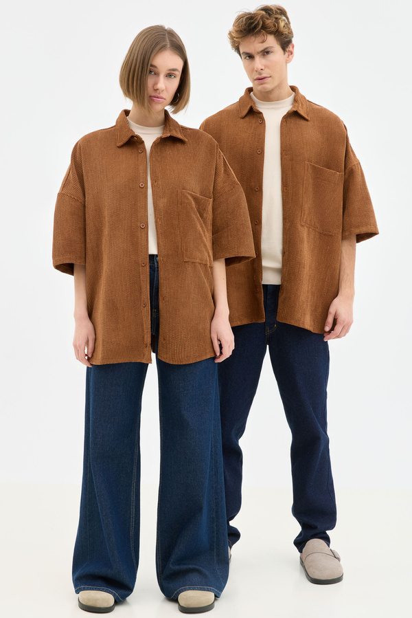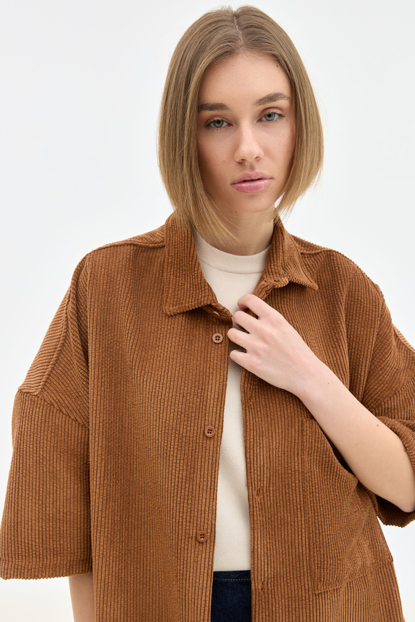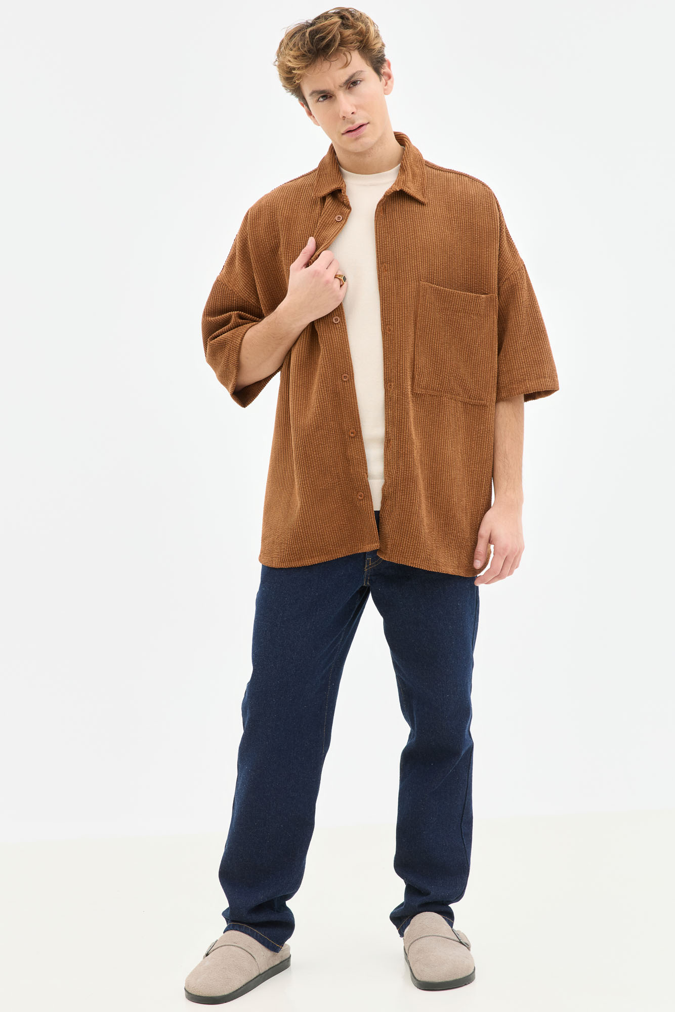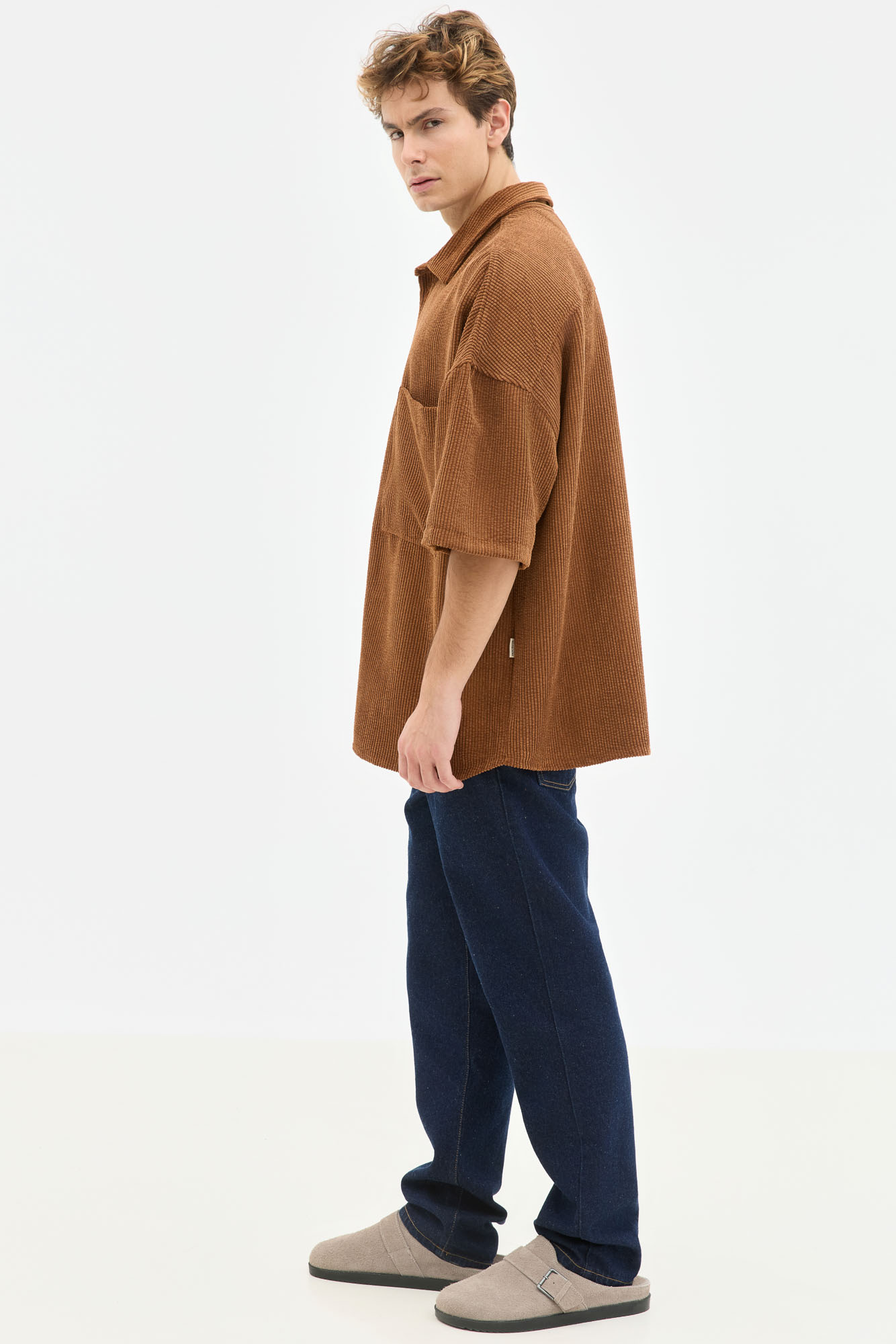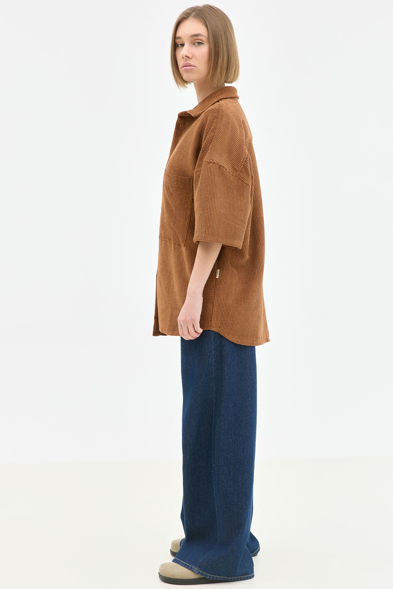 Κοτλέ Καφέ Κοντομάνικο Σε Oversized Γραμμή