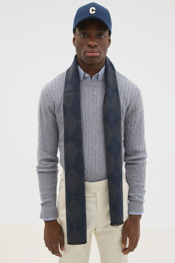 Gray-Black Blended Cashmere Double Face In Geometric Design