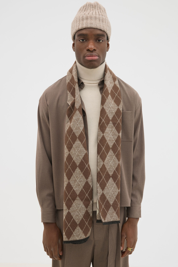 Black-Brown Blended Cashmere Double Face In Geometric Design