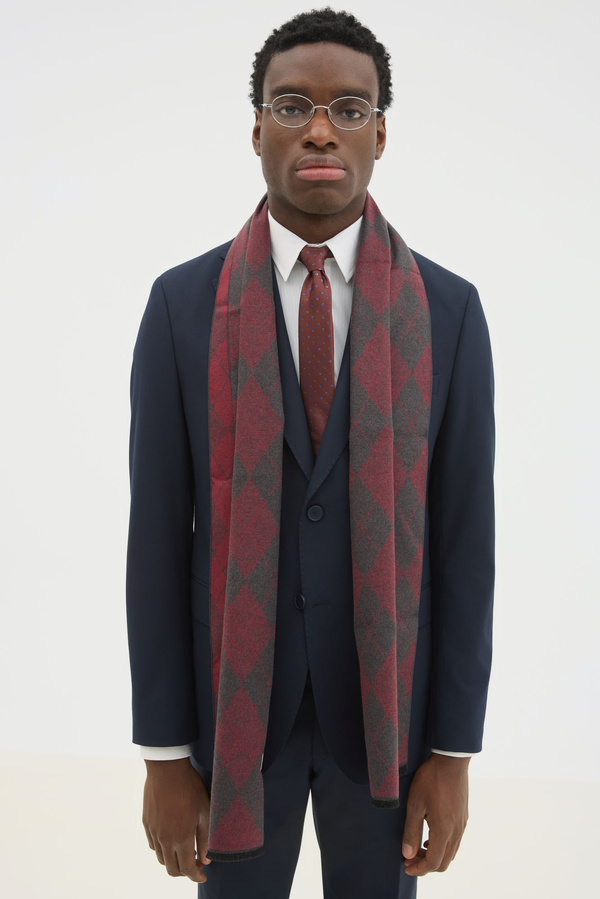 Red-Black Blended Cashmere Double Face In Geometric Design
